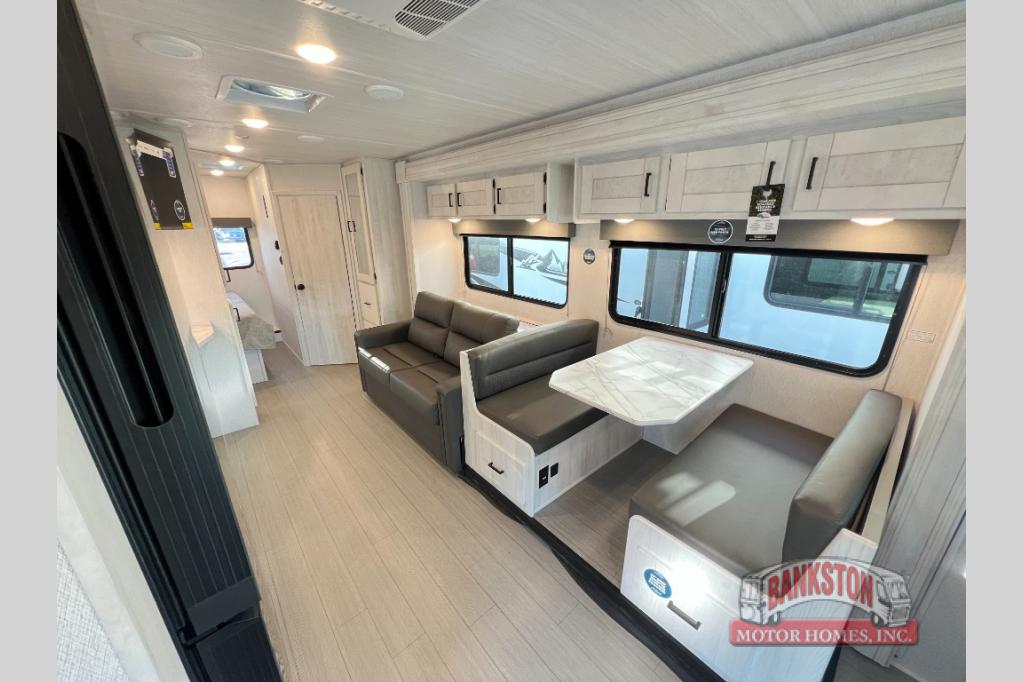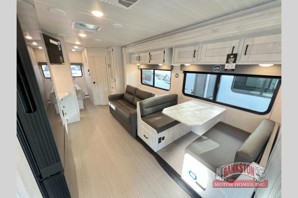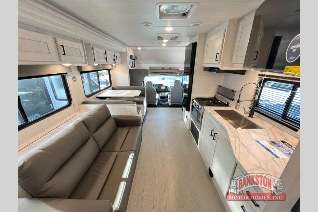 With any Entrada Class C gas motorhome from EAST TO WEST, the construction consists of an automotive painted fiberglass front cap, a Dicor DiFlex ll TPO roof membrane, and Azdel composite sidewalls for added durability. Some of the Entrada value package features include 12V tank heaters to camp during the cooler months, the Winegard Air 360+, plus backup and sideview cameras with a monitor for safety on and off the road. The interior offers a 7-foot interior height for a spacious feel, and 12V USB charge ports will keep your electronics powered up. Choose an Entrada for its tasteful design, attention to detail, bright interior and affordable price-point!