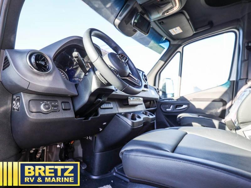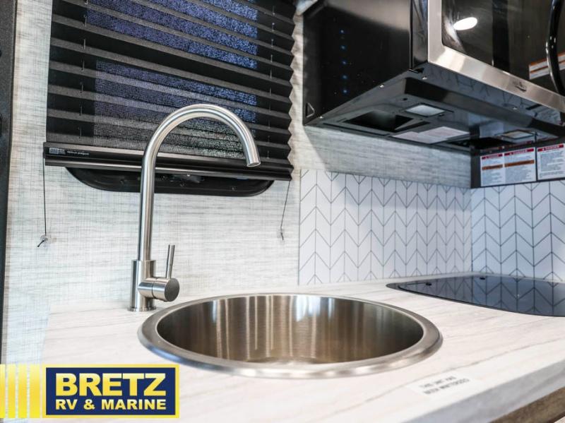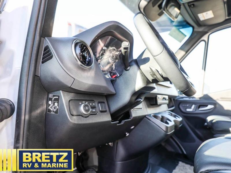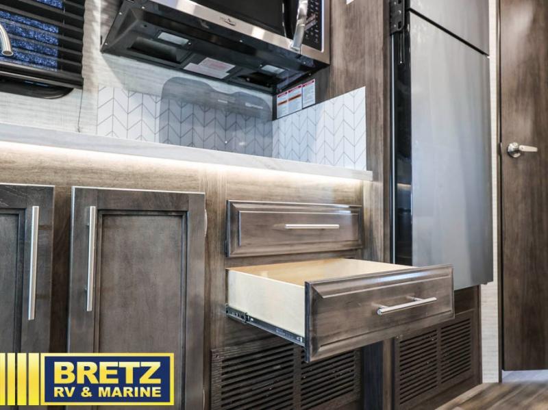 With any Qwest SE Class C diesel motorhome by Entegra Coach, you will enjoy a safe and enjoyable trip each time you take to the road! Each model sits on a durable Mercedes-Benz 3500 chassis with a 170 in. wheelbase and a 9-speed automatic transmission for an overall better driving experience. There is a one-piece, seamless fiberglass front cap to combat leaks, and the TuffShell construction will hold up over time. The driver will appreciate the 7" integrated Mercedes-Benz MBUX infotainment center that includes Apple CarPlay and Android Auto so they can navigate the road like a pro, plus there are backup and side-view cameras for easy parking. You will also appreciate an exterior utility center, an outside shower, electric stabilizer jacks, and many more exterior conveniences. Head inside to find LED-lit pressed countertops, decorative kitchen backsplash, pleated blackout shades for added privacy, and high-intensity LED ceiling lights to keep your space bright and open.