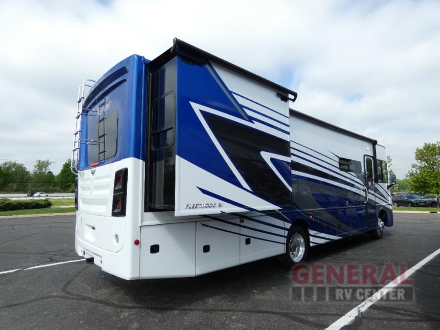 With any Bounder Class A gas motorhome by Fleetwood, you can travel in luxury and style with the power you desire to enjoy the ride as much as the destination. Beginning with the Power Platform Ford chassis, the enhanced safety features such as remote, power-heated mirrors with turn indicators and side cameras, and the color monitor for side and rear cameras, traveling is made easy. There is also an automotive one-piece windshield, a 100W solar panel, and WiFi Ranger Sky4 that come standard. A 5.5kW Onan generator will keep you powered up and you'll find plenty of storage both inside and out for personal belongings, camp gear, and more. Inside you will love the look of the durable, hand-laid Tarkett flooring, the energy efficient LED flush mount ceiling lighting, and the fiberglass shower with a glass door. Choose a Bounder Class A gas coach to discover even more stand-out features!