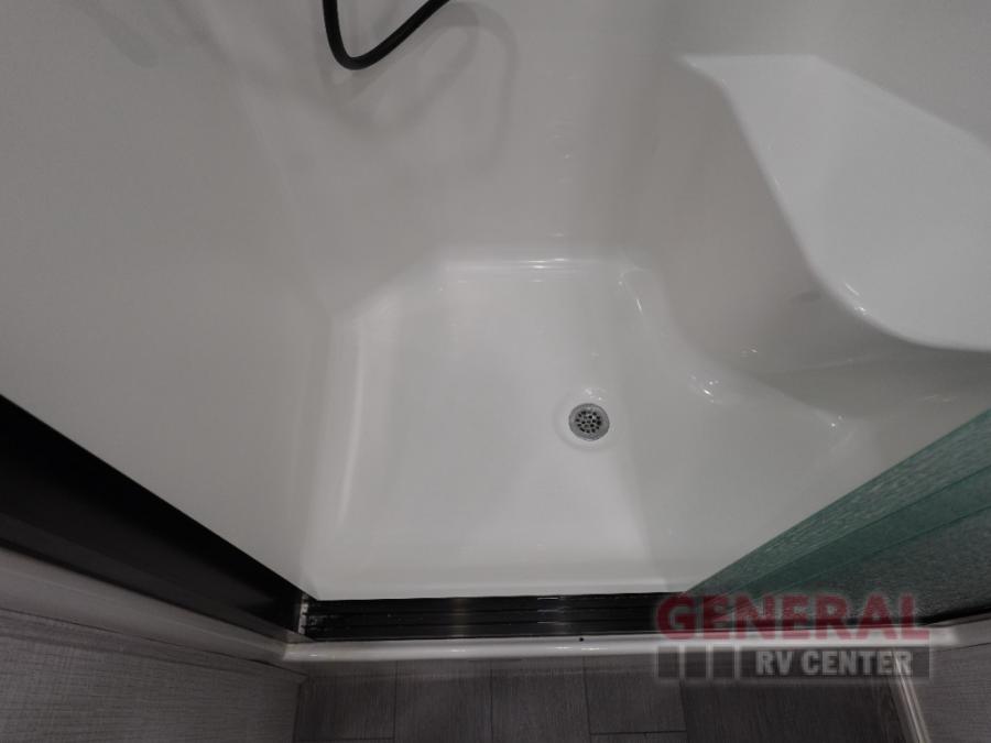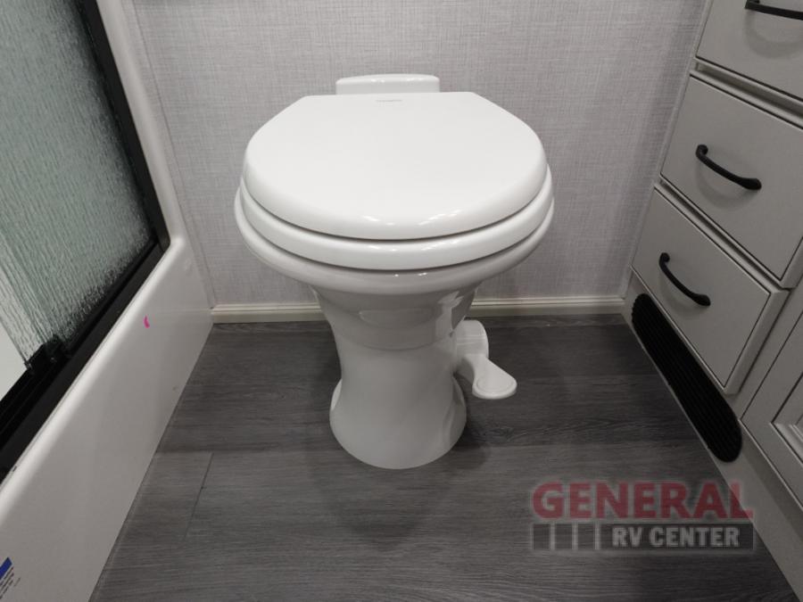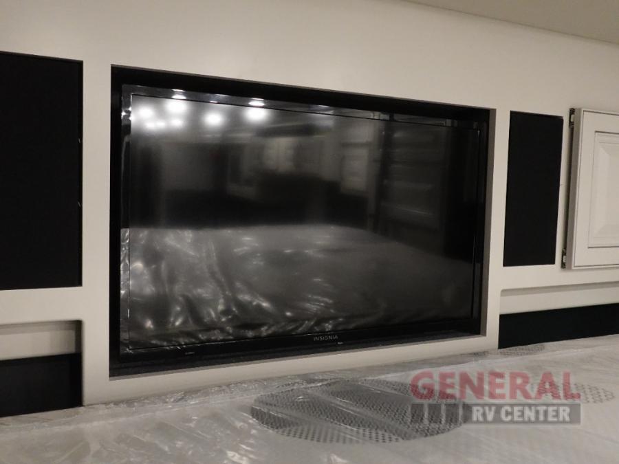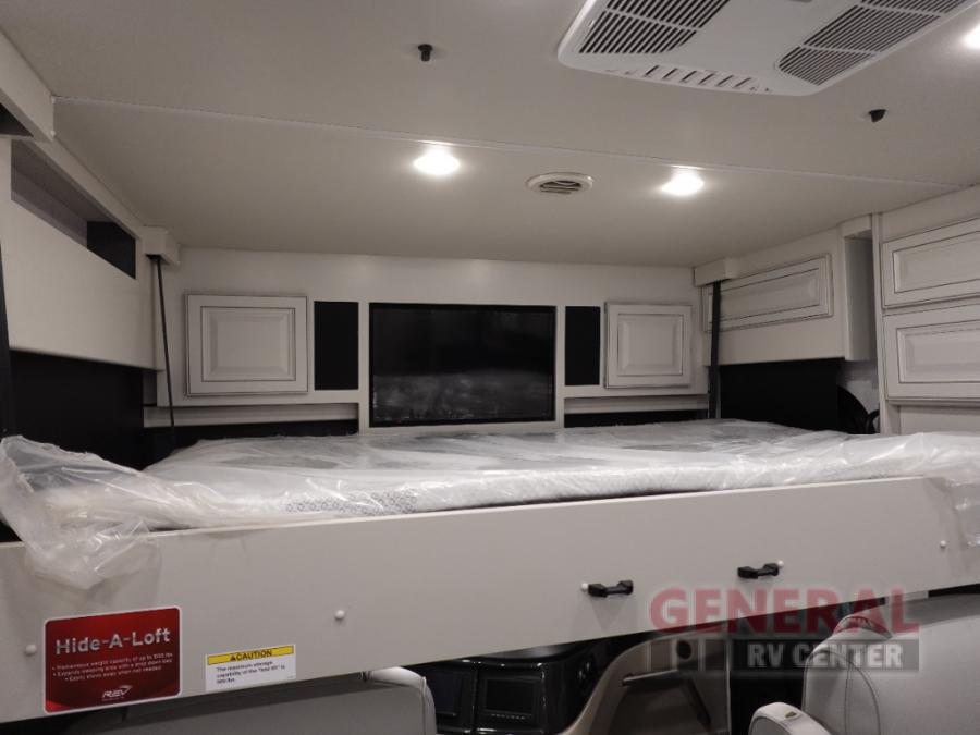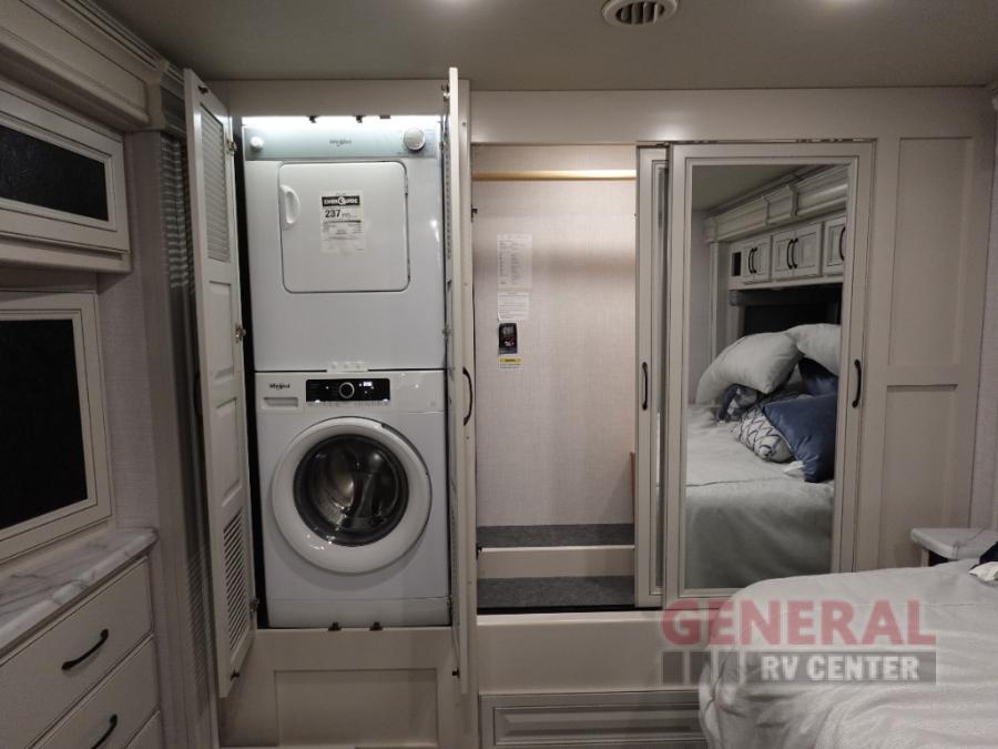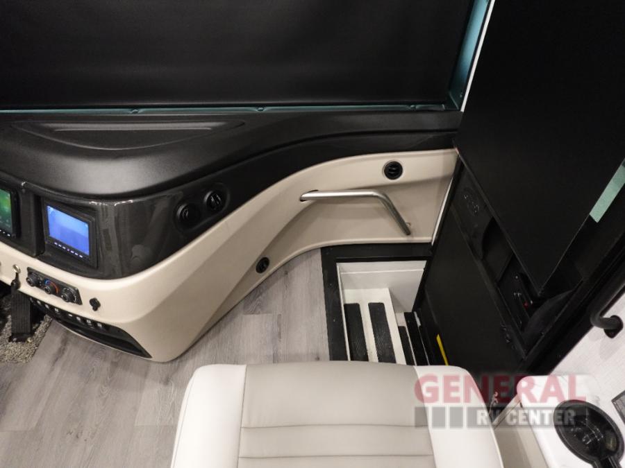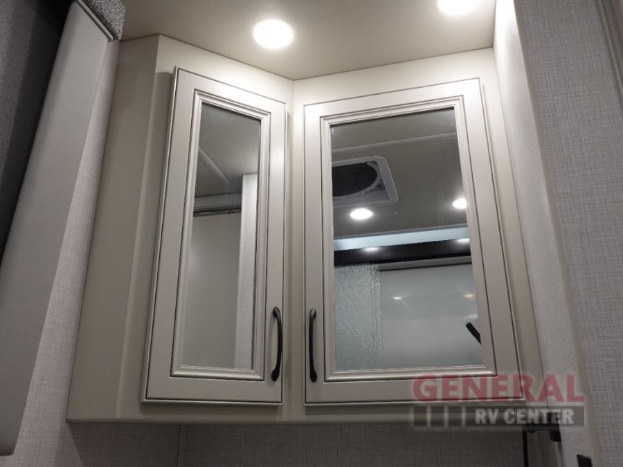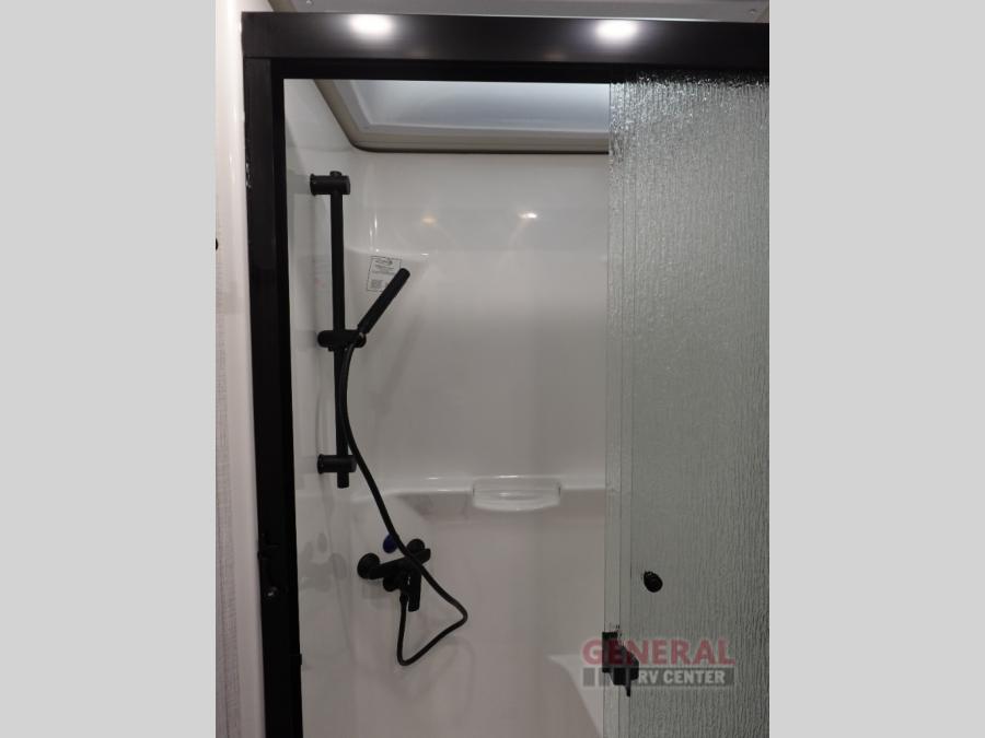 Looking for a couples coach or a family RV that offers everything you want plus more? Look no further! You can travel in style with the beautiful interior and exterior, and relax in comfort on the sofa sleeper with pull-out queen bed and the dinette as well as captain's chairs. Everyone can visit and watch the pop-up LED TV and stay cozy from the fireplace while the cook makes a meal in the kitchen using the induction cooktop and convection microwave. No problem with beverage and leftover storage with a residential refrigerator, and your snacks will fit nicely in the pantry. The full bathroom offers a seated shower and pocket door. The kids or your guests can sleep on the furniture once setup for bedtime, and you will have your own privacy in the rear bedroom with a Encore Series king bed, as well as plenty of storage in the full-length wardrobe, and dresser.