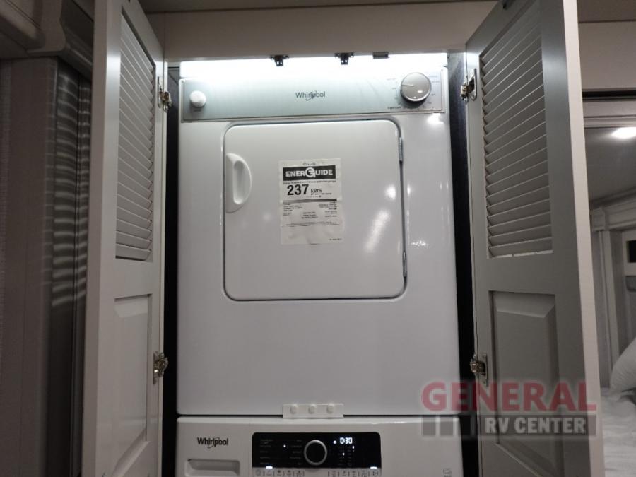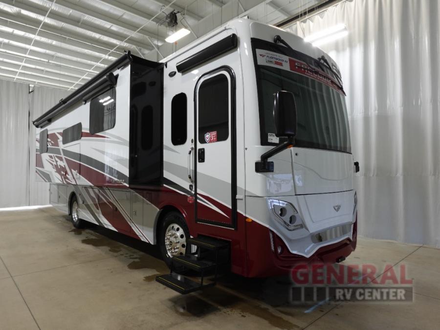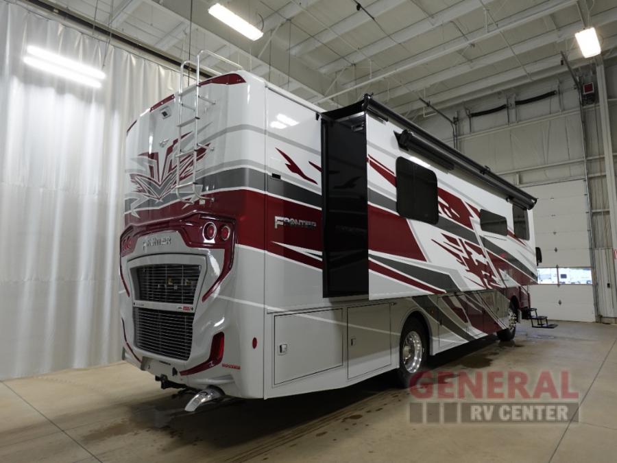 With any Frontier Class A diesel by Fleetwood RV, the Cummins 6.7L, 340HP engine with 700 lb./ft. torque gives you the power you want, the 100-gallon fuel tank allows you to stop less unless you want to take in the scenery, and the DriveTech/Optiview display and control system makes for a safer driving experience making each and every trip enjoyable. The legless electric patio awning with LED lighting and motion sensor retract provides protection while relaxing outside, and the extra exterior storage allows you to bring everything you need, plus some! Inside you will have (almost) endless hot water thanks to the Aqua-hot 250D compact heating unit, a solid surface galley countertop, a single-bowl, stainless steel farmhouse sink, many residential features throughout, and composite tile flooring.