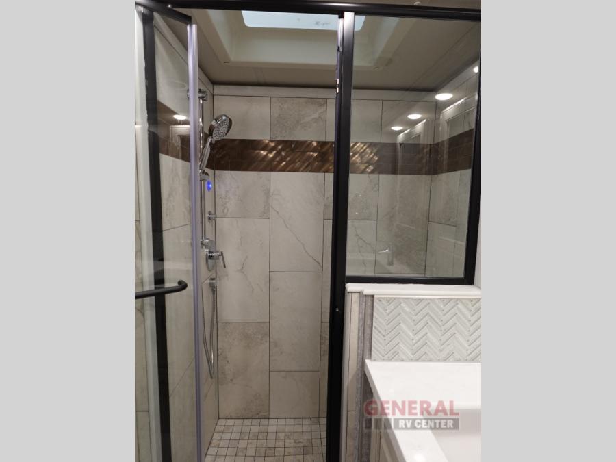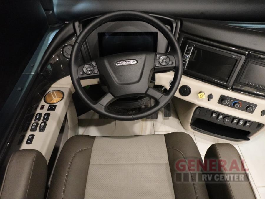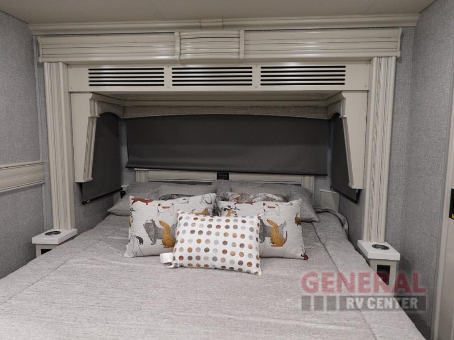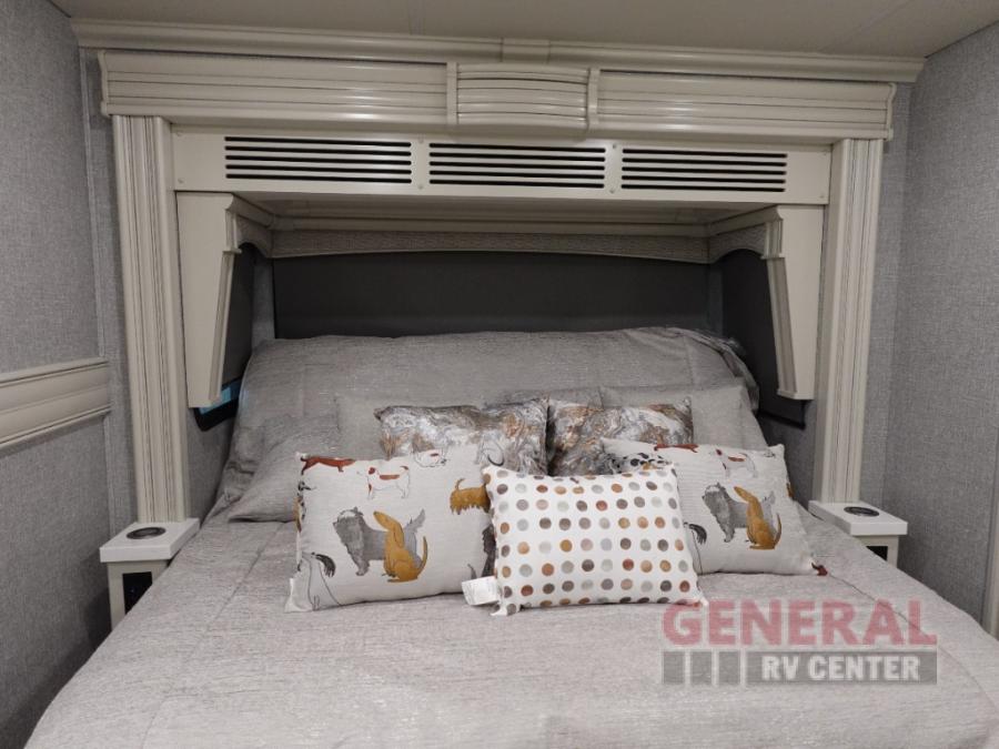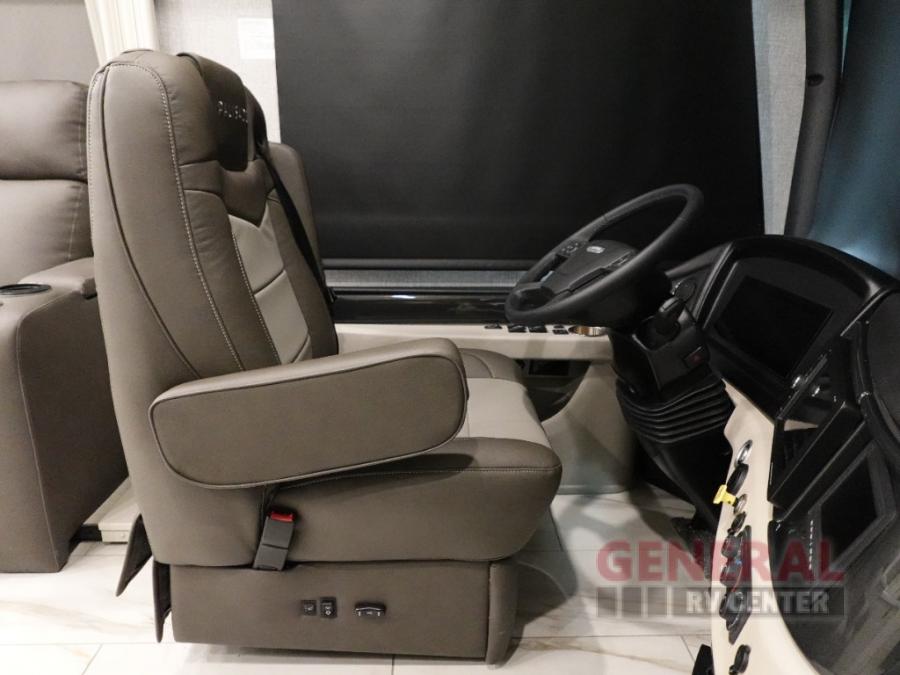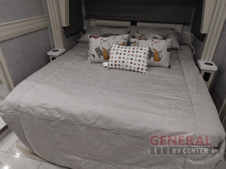 With any Palisade Class A diesel motorhome by Fleetwood RV, you will be met with luxury at every turn! There is a Freedom Bridge foundation and a Freightliner Custom Chassis plus an Allison 3000 6-speed transmission for a smooth drive. The Vacu-Bond aluminum framed constructed sidewalls, roof, and floors means you can enjoy your coach for years to come, and the Powerlock System interlocks the floor, walls and roof for even more strength. Outside, the basement pass-through storage and side swing aluminum bus-style baggage doors will let you easily pack camp gear, and the 4-color premier full body paint is sure to turn heads as you travel down the highway. Additional exterior features include automatic hydraulic leveling jacks, a King universal stationary satellite, automatic entrance steps, and the list goes on! Once inside, you can enjoy the porcelain tile flooring, hardwood cabinetry, elegant tile backsplash, dual bath sinks, and glass shower door to name a few comforts!