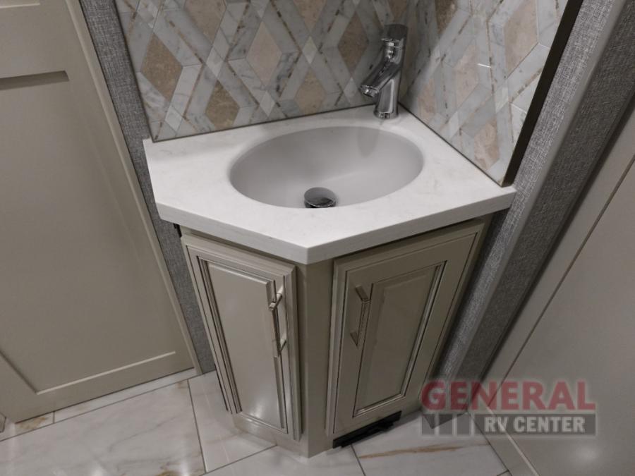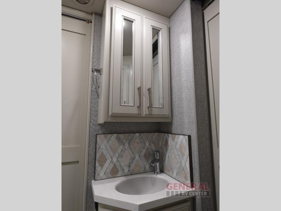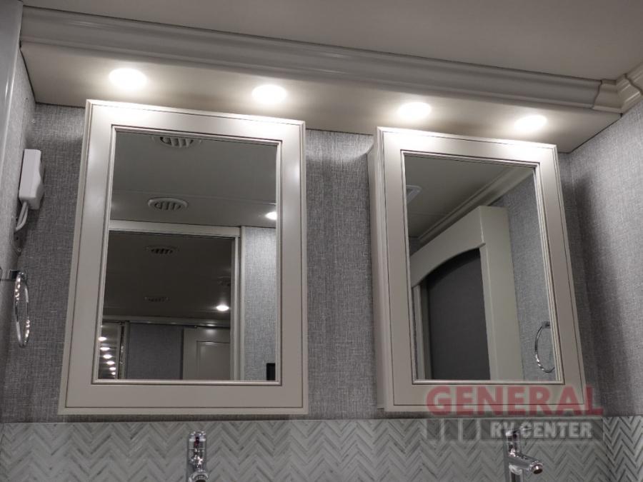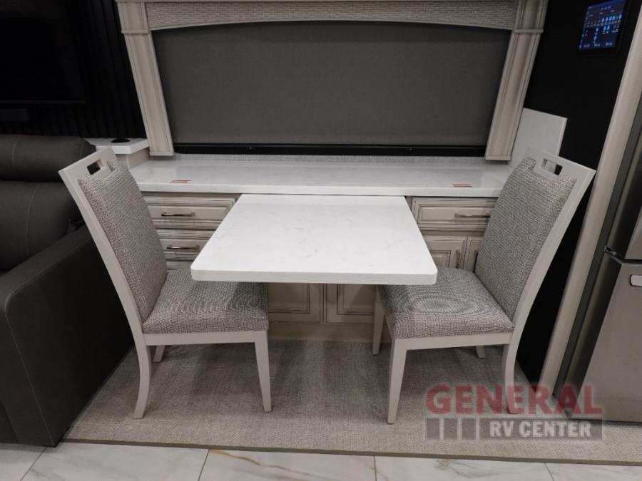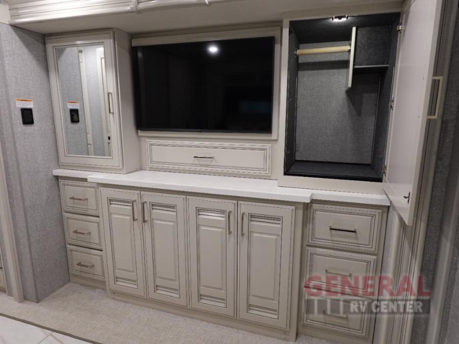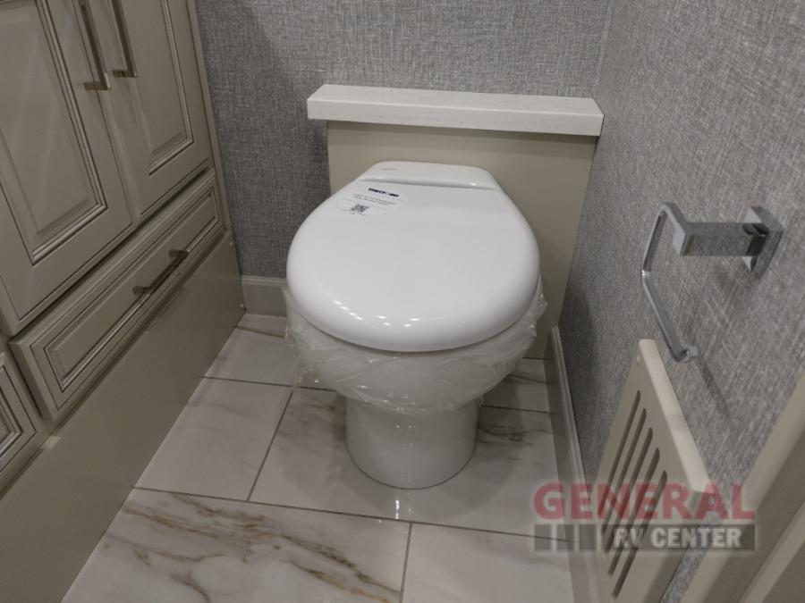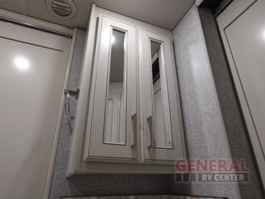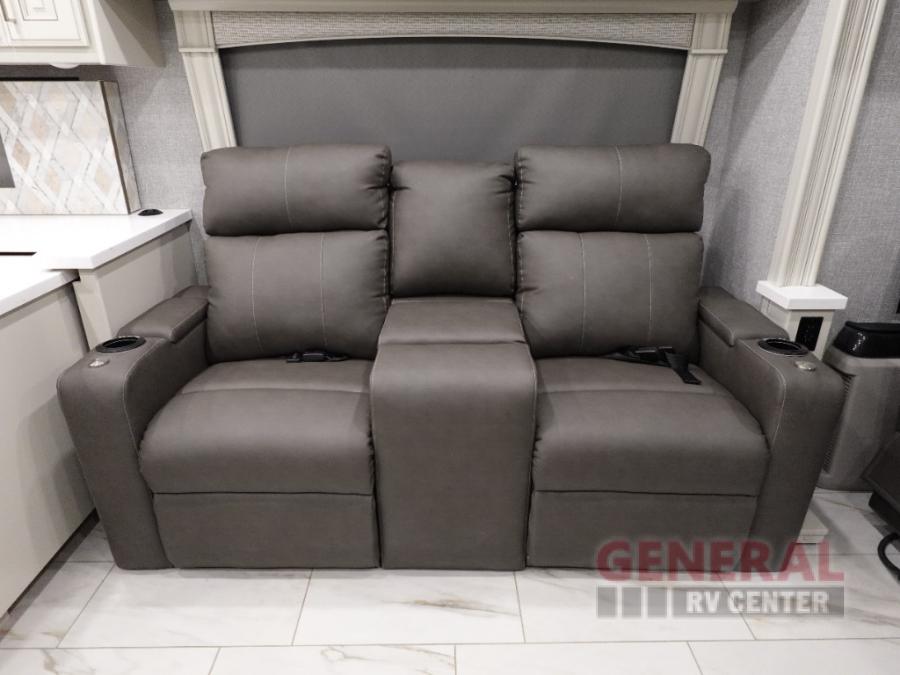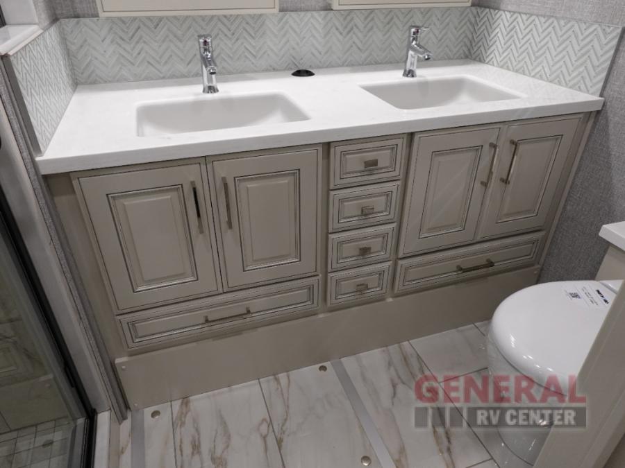 Head across the country or state in this spacious coach! The motion power lounge provides a comfy place to relax, and the sleeper sofa with a full-size mattress will be perfect for guests. The full kitchen includes a two burner induction cooktop and stainless steel over-the-range convection microwave to cook meals, plus a dishwasher for easy clean-up and a residential refrigerator for food storage. You will love having a king bed slide out to sleep on, along with dual bedroom wardrobes and a side-by-side washer and dryer to make laundry day easier than ever. The convertible bunk beds are right across from the mid-coach full bath, and there are accordion doors here if you want to make the bunks and bath one big master bunkhouse! The second full bath is found in the back, creating a master bedroom you are sure to love. There are dual bath sinks here, a toilet, and a tile shower with a seat for all-around luxury!