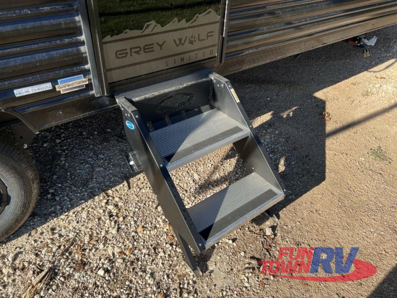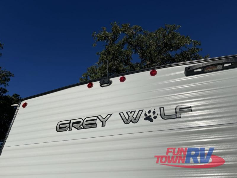 Whether it's a journey that will take you to new locations or a tried-and-true getaway to that favorite and memorable destination, the Forest River Cherokee Grey Wolf travel trailers and toy haulers are going to make the trip worth it every single time! You can travel in confidence with the premium wheel package, seamless roofing membrane with heat reflectivity, Power Gear frame technology with space-saver rail design, and Cherokee back-up camera system. The Cherokee Grey Wolf's interior is highly attractive with its stainless steel kitchen suite package and premium bedding ensemble and comforter. You will also find a black waste tank flush-out kit, an outside shower with hot and cold water, an armored underbelly tank enclosure, and an RV grill quick connect.
