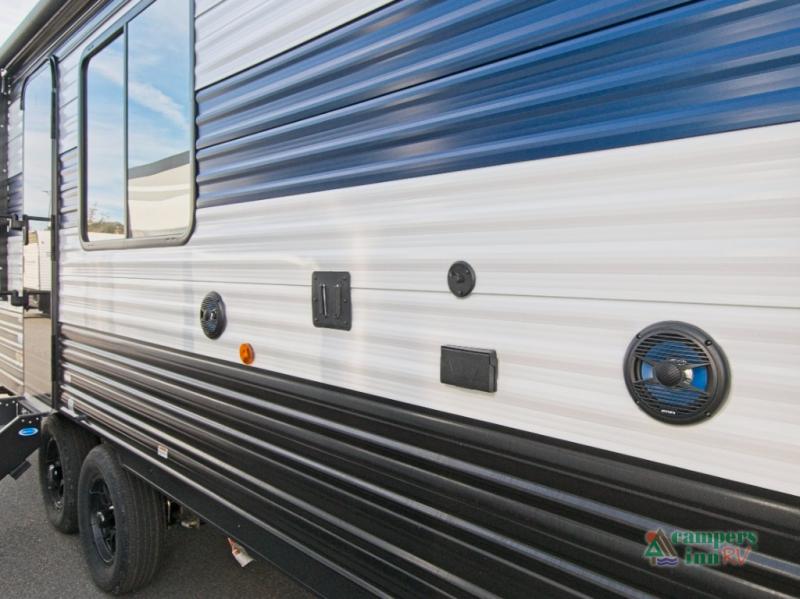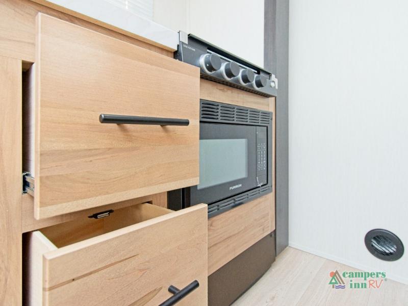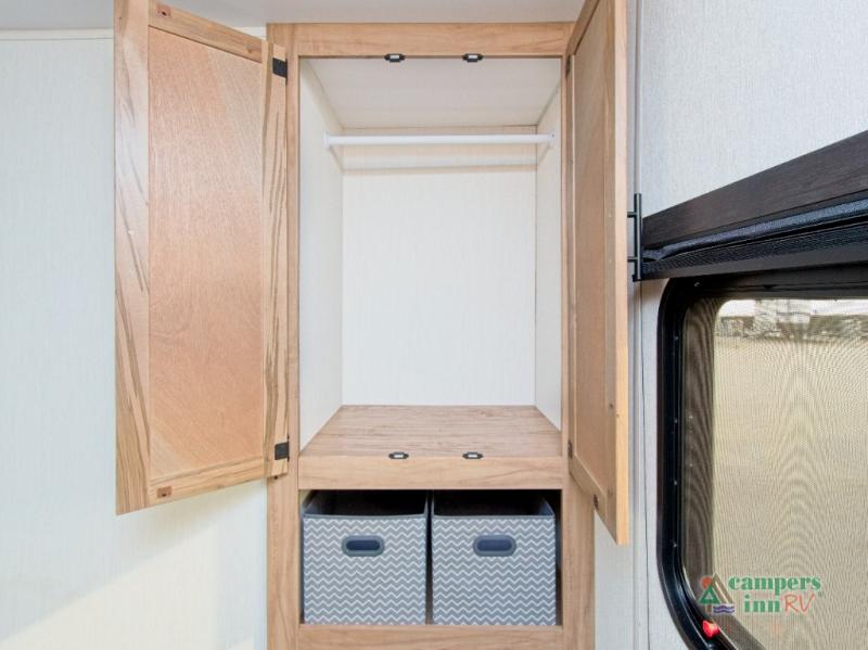 When it’s time to enjoy the great outdoors, the power awning with LED lights sets the stage for evening relaxation under the stars. With ample outside storage, you can bring all your gear along for the ride.