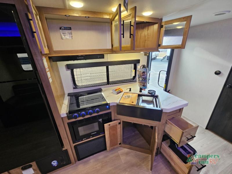 Whether it's a journey that will take you to new locations or a tried-and-true getaway to that favorite and memorable destination, the Forest River Cherokee Grey Wolf travel trailers and toy haulers are going to make the trip worth it every single time! You can travel in confidence with the premium wheel package, seamless roofing membrane with heat reflectivity, Power Gear frame technology with space-saver rail design, and Cherokee back-up camera system. The Cherokee Grey Wolf's interior is highly attractive with its stainless steel kitchen suite package and premium bedding ensemble and comforter. You will also find a black waste tank flush-out kit, an outside shower with hot and cold water, an armored underbelly tank enclosure, and an RV grill quick connect