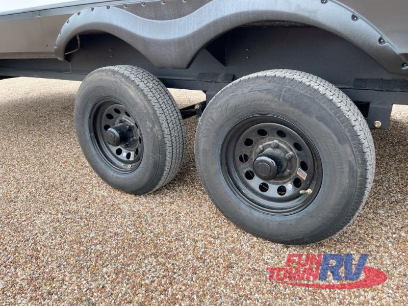 With any Cherokee Wolf Pack toy hauler by Forest River, you will enjoy never-ending adventures. You'll appreciate the 8' 6" wide body design so you can bring along toys and gear, and there is a high-output LED loading light for added convenience when you're getting back to camp late. There is real wood cabinet doors and drawers inside and LED lights to keep your space well lit. These toy haulers are built with tongue and groove plywood main floors and a forced air heated underbelly and enclosed holding tanks that will help you extend your camping season.