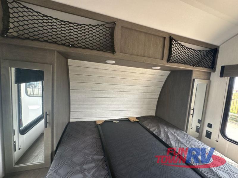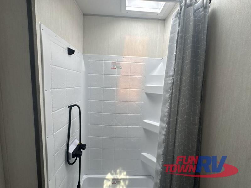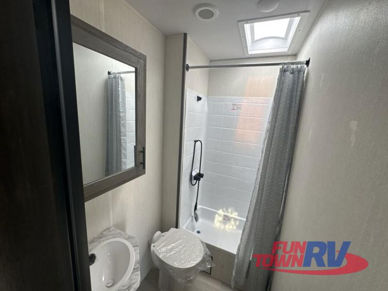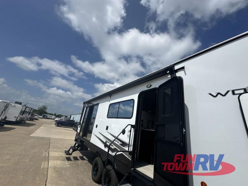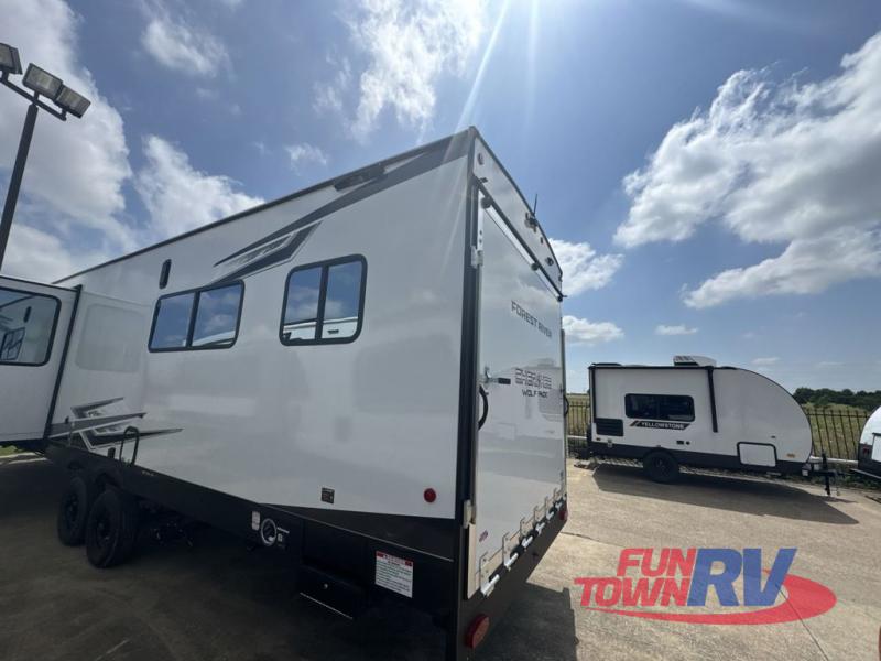 With any Cherokee Wolf Pack toy hauler by Forest River, you will enjoy never-ending adventures. You'll appreciate the 8' 6" wide body design so you can bring along toys and gear, and there is a high-output LED loading light for added convenience when you're getting back to camp late. There is real wood cabinet doors and drawers inside and LED lights to keep your space well lit. These toy haulers are built with tongue and groove plywood main floors and a forced air heated underbelly and enclosed holding tanks that will help you extend your camping season.