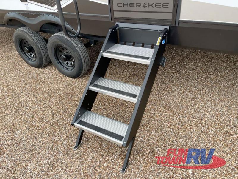 With any Cherokee Wolf Pack toy hauler by Forest River, you will enjoy never-ending adventures. You'll appreciate the 8' 6" wide body design so you can bring along toys and gear, and there is a high-output LED loading light for added convenience when you're getting back to camp late. There is real wood cabinet doors and drawers inside and LED lights to keep your space well lit. These toy haulers are built with tongue and groove plywood main floors and a forced air heated underbelly and enclosed holding tanks that will help you extend your camping season.