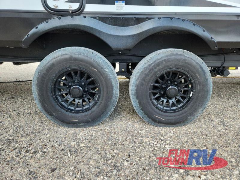 With any Cherokee Wolf Pack toy hauler by Forest River, you will enjoy never-ending adventures. You'll appreciate the 8' 6" wide body design so you can bring along toys and gear, and there is a high-output LED loading light for added convenience when you're getting back to camp late. There is real wood cabinet doors and drawers inside and LED lights to keep your space well lit. These toy haulers are built with tongue and groove plywood main floors and a forced air heated underbelly and enclosed holding tanks that will help you extend your camping season.