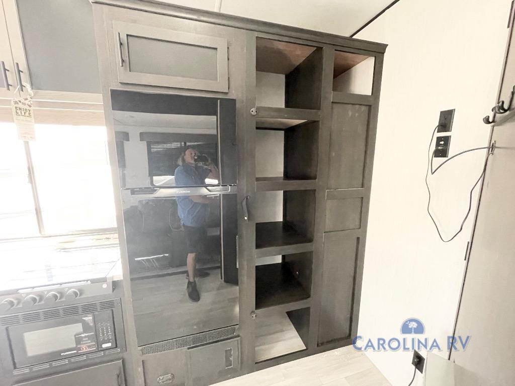 Fun at the campground begins with this dual entry toy hauler in tow! There is a 15' separate garage with glass patio doors, a loft above for guests, plus a patio deck to entertain guests. Your crew can get comfy on the theater seating or booth dinette, and there is an entertainment center with a fireplace and a hidden pantry for snacks. The chef of your group will love the full interior kitchen, along with an outdoor kitchen when the weather is nice. A full bath lets you freshen up after a trail ride, and the front private bedroom gives you your own space at night. This unit also features washer and dryer prep in the bedroom so you can add those appliances if you wish!