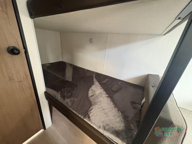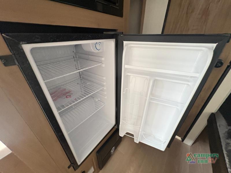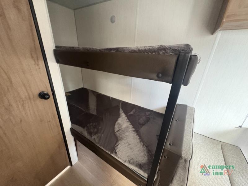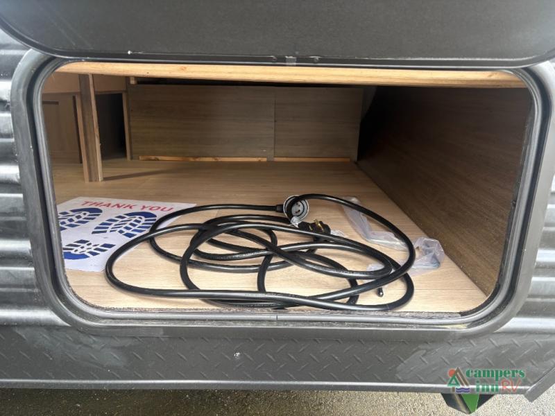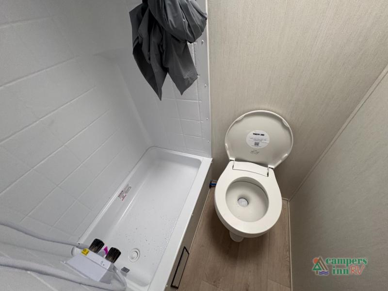 Step inside and you’ll immediately notice how bright and open this RV feels. The thoughtfully designed layout maximizes every inch of space, giving you a comfortable sleeping area, functional kitchenette, and a cozy dinette for meals or game nights. With its all-electric setup, you’ll enjoy quiet operation, reduced emissions, and the ability to power your adventures with clean energy when paired with solar. This means more time off-grid and less time worrying about hookups.