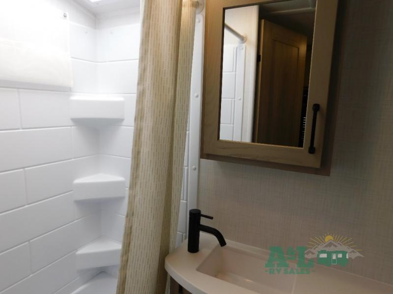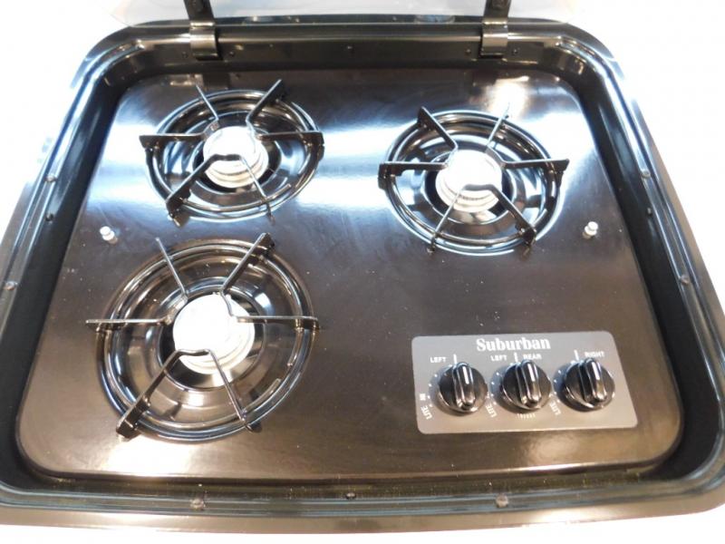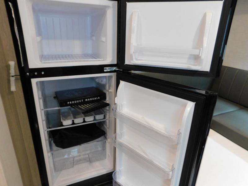 Your small family will enjoy camping in this travel trailer! The 26" x 80" flip-up bunk provides a comfortable place to sleep above the 54" x 74" full bed, as well as the front 54" x 81" U-shaped dinette once converted. You even have a 32" TV nearby to watch your favorite movies. Freshen up in the full bathroom each morning and warm up a cinnamon roll in the convection microwave or grab some eggs from the 12V refrigerator then fry them up on the recessed three burner cooktop. There is also an outside griddle underneath the 15' power awning, and the pass-thru storage will be perfect for fishing poles!