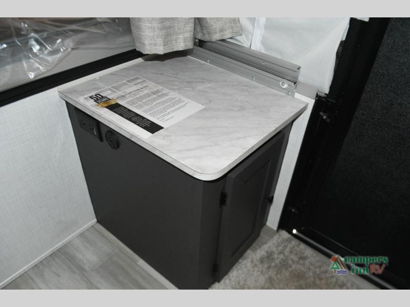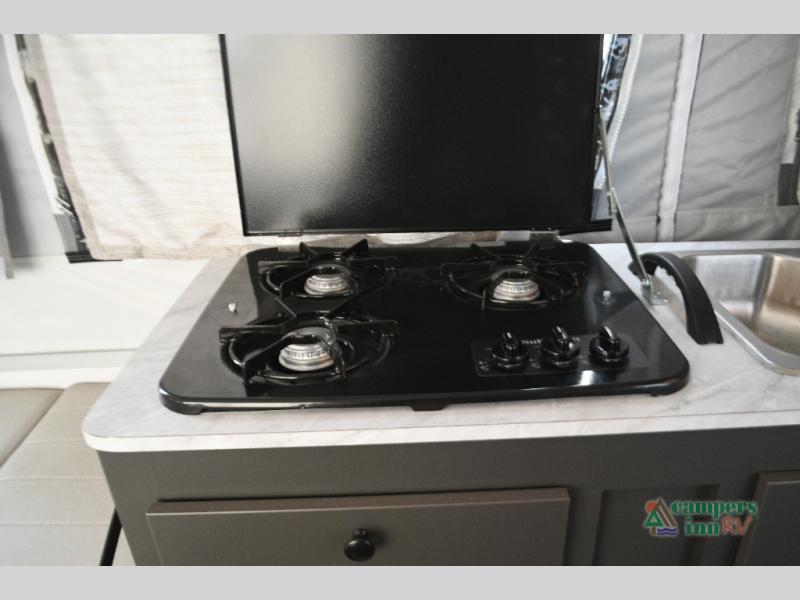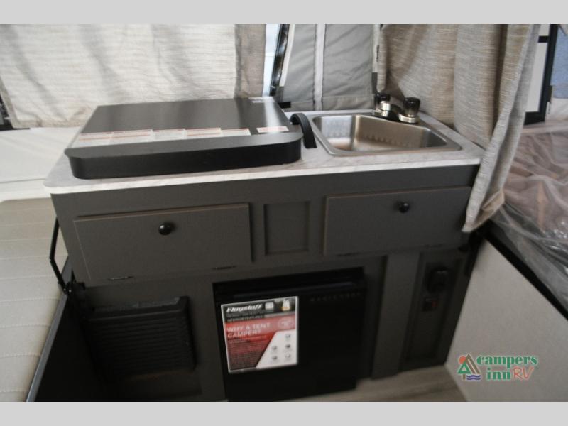 - Compact Kitchenette: Features a two-burner range, sink, and mini-fridge for easy meal prep wherever your adventure takes you.