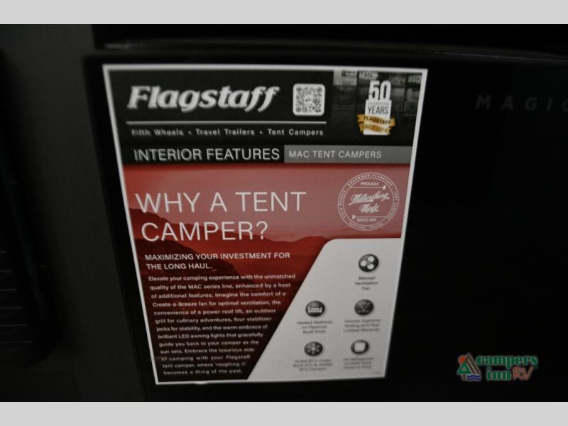 The 2025 Forest River Flagstaff MAC Series 191MT is the perfect combination of comfort, versatility, and outdoor readiness. Designed for travelers who seek simplicity without sacrificing convenience, this pop-up camper delivers a lightweight design with features that ensure your trips are hassle-free and memorable.