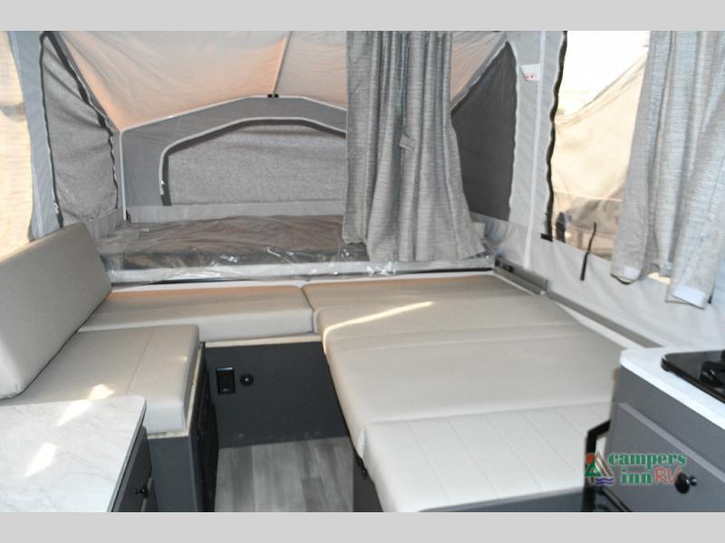 - Convertible Dinette: The cozy dinette easily converts into an extra sleeping space, making it ideal for accommodating extra guests or children.
