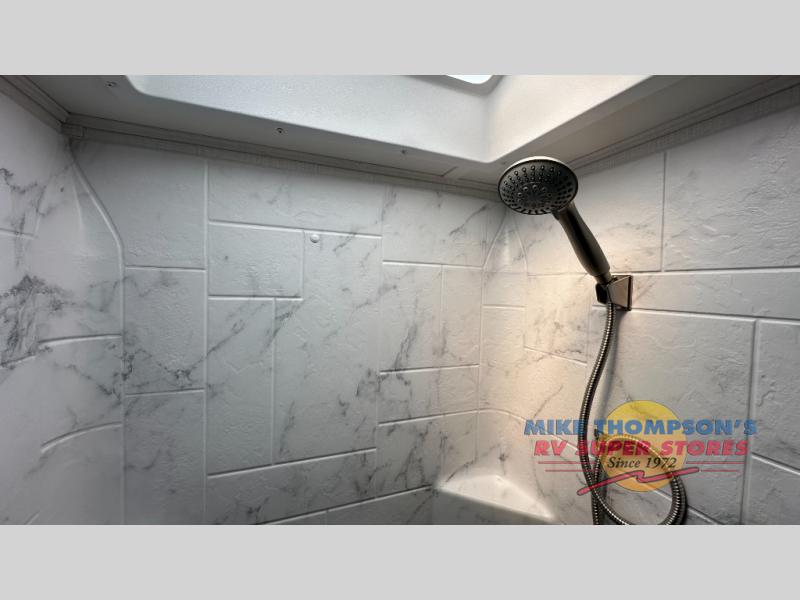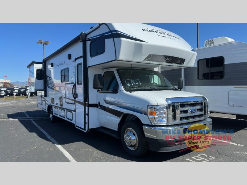 With any Forester Classic Class C gas motorhome by Forest River you will enjoy comfort at every turn! They offer a smooth ride with the EZ Ryde premium suspension system, and the ultra leather captain's seats will ensure comfort wherever you go. There are heated, enclosed holding tanks and valves plus block foam insulation to enjoy four-seasons camping, and the gel coat exterior fiberglass is slick and easy to keep clean. A keyless entry comes standard for your convenience, along with a color back-up camera and side view cameras with a 3-way monitor for added safety when parking. The Forester Classic motorhomes also include a Maxx Air multi-speed power fan with a cover, a shower skylight, a cordless 12V charging plate, plus black out roller shades for privacy any time.