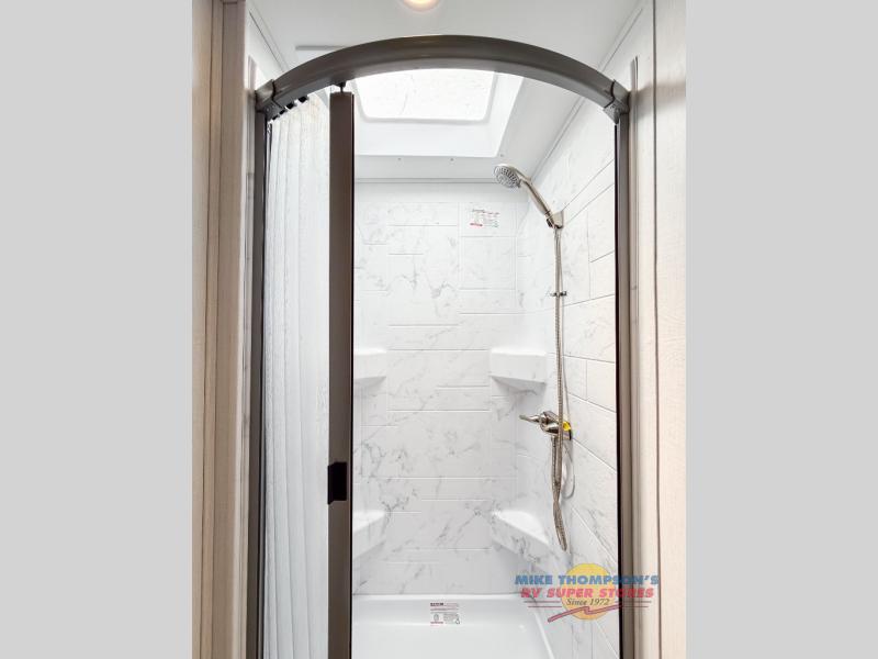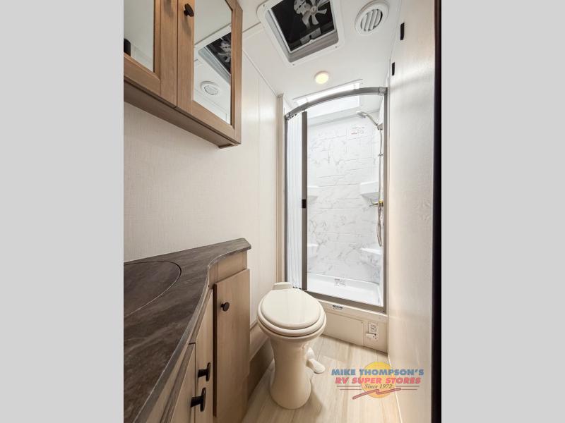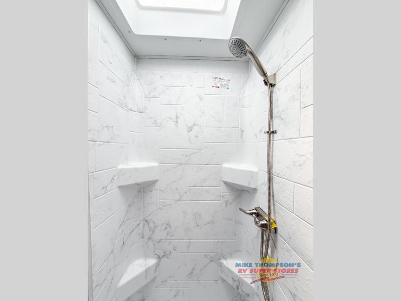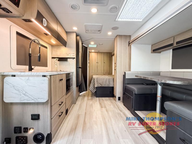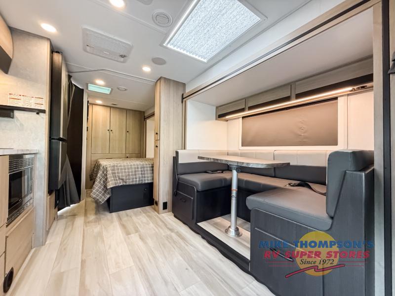 With any Forester MBS Class C diesel motorhome by Forest River, you will have a diesel Mercedes chassis, a 10" touch screen with CarPlay/Android radio with USB and Bluetooth, plus a backup camera with side view cameras and 3-way monitor to easily maneuver the road. The Gateway 4G WiFi capability and Winegard Air 360+ digital antenna will help keep you connected, and the optional 190W charging system gives you the option to go off-grid if you choose. The spacious living area and well-appointed décor will make you feel at home, plus the bathroom's motion sensor light and oxygen-infused shower head with a flexible extension will provide the comfort and style you are wanting in your next RV!