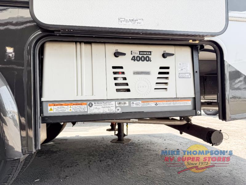 When you are ready to enjoy camping and traveling, take this coach with you! There are leather, swivel captain's seats to ensure your comfort, plus a full bathroom just like home. Once at your destination, easily set up the two slides and power awning, and relax on the U-shaped dinette or outside under the awning. Back inside, you can make meals using the two-burner range and the convection microwave, and the 10.7 cu. ft. 12V refrigerator will hold all your drinks and cold items. There is a flip-up counter for more prep space, and a pantry for your dry goods. At night, sleep on an RV queen bed while you watch the 12V TV in the bedroom, and your friends can sleep on the cab over bunk and the U-shaped dinette while watching the living area 12V TV.