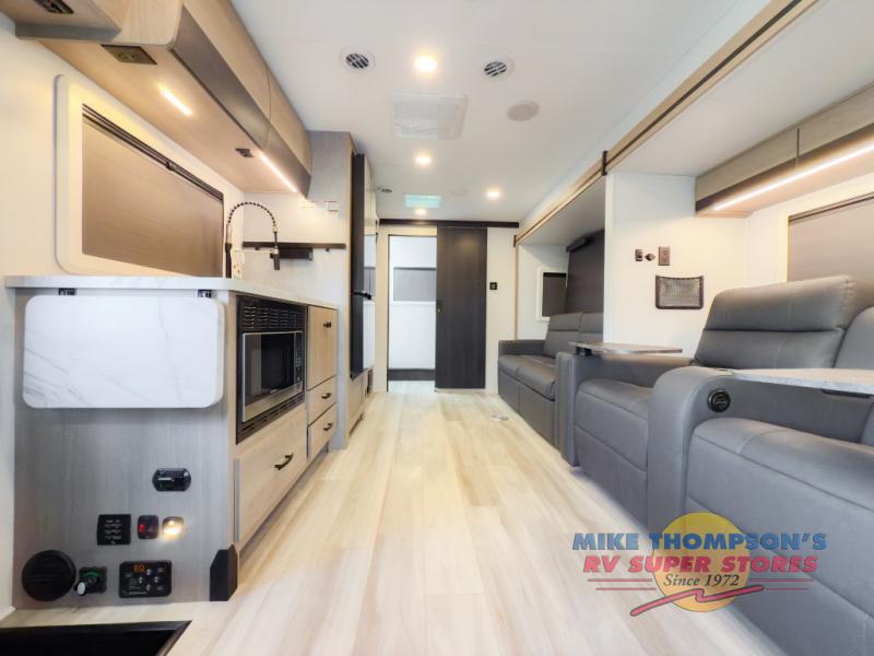 With any Forester MBS Class C diesel motorhome by Forest River, you will have a diesel Mercedes chassis, a 10" touch screen with CarPlay/Android radio with USB and Bluetooth, plus a backup camera with side view cameras and 3-way monitor to easily maneuver the road. The Gateway 4G WiFi capability and Winegard Air 360+ digital antenna will help keep you connected, and the optional 190W charging system gives you the option to go off-grid if you choose. The spacious living area and well-appointed décor will make you feel at home, plus the bathroom's motion sensor light and oxygen-infused shower head with a flexible extension will provide the comfort and style you are wanting in your next RV!