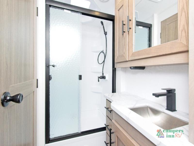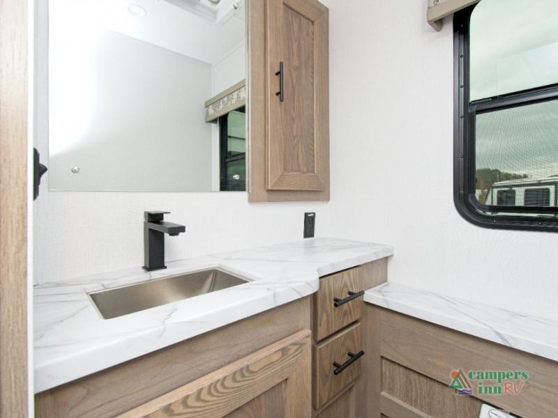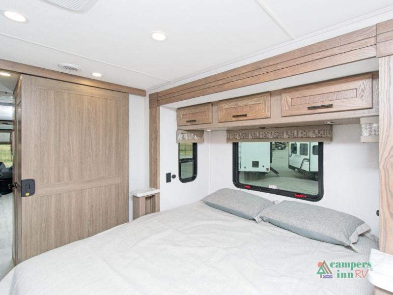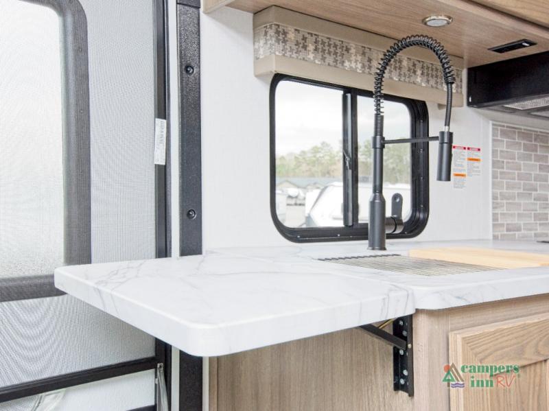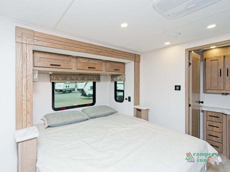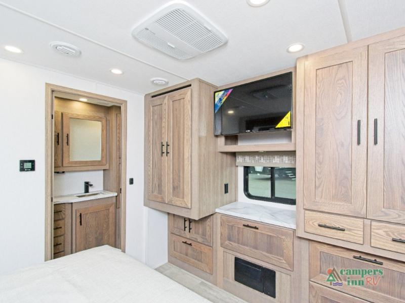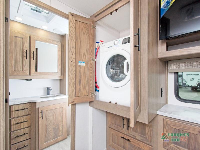 Whether you’re relaxing outdoors or inside, the power awning extends easily for outdoor enjoyment, and the 32" exterior TV is perfect for watching your favorite shows or sports while connecting with fellow RVers. Want to freshen up your wardrobe? Add the washer and dryer option in the bedroom and take care of laundry while on the road.