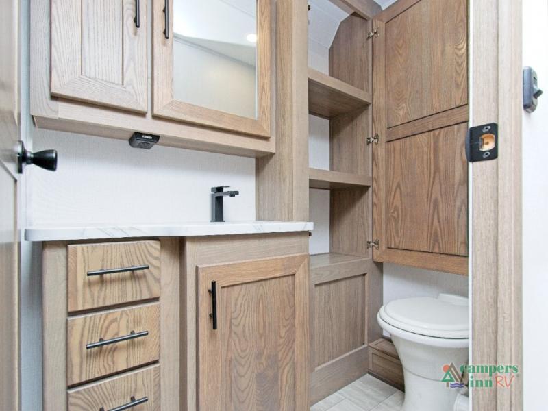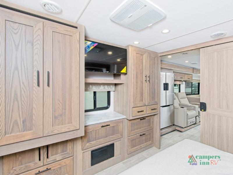 Smart storage options like dual-access dinette storage and nightstands with charging stations ensure your devices are always powered and your space remains organized.