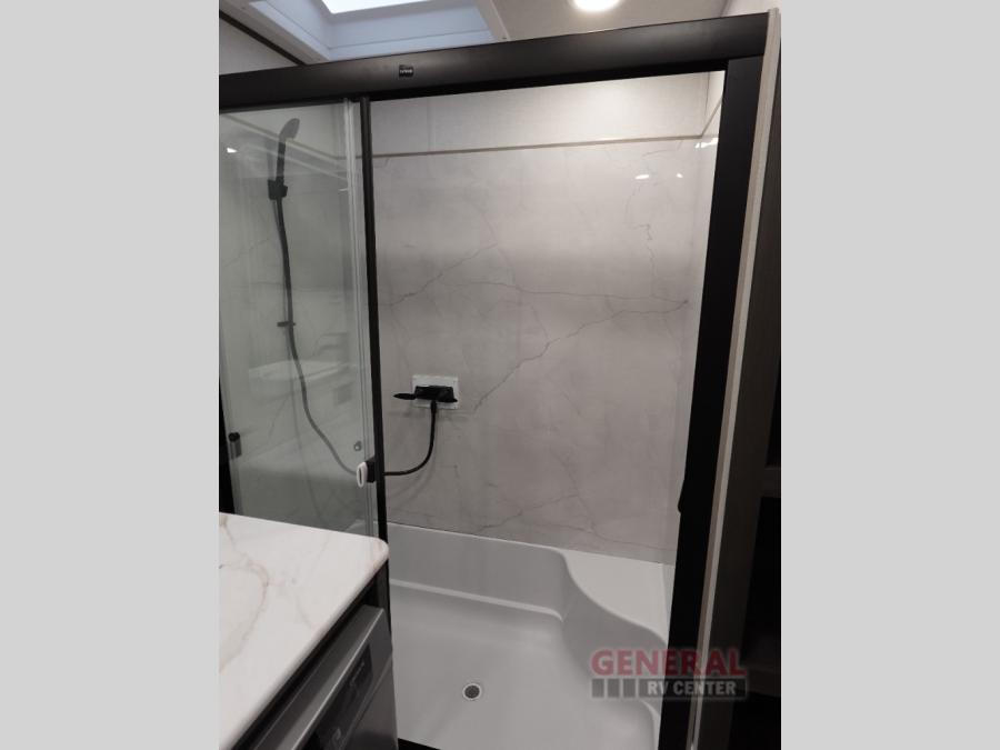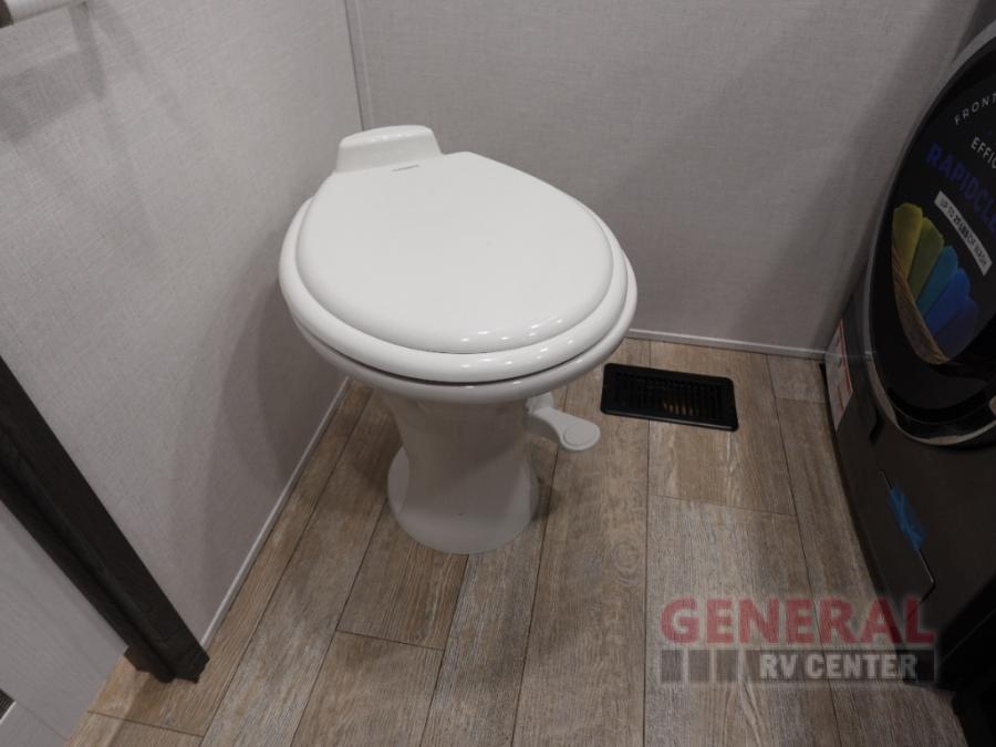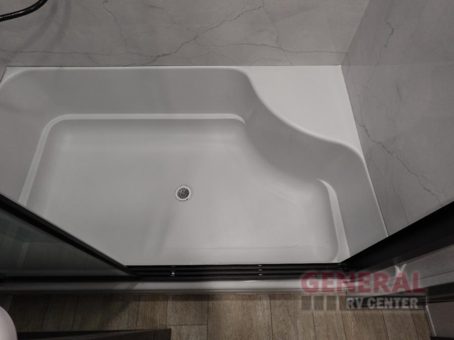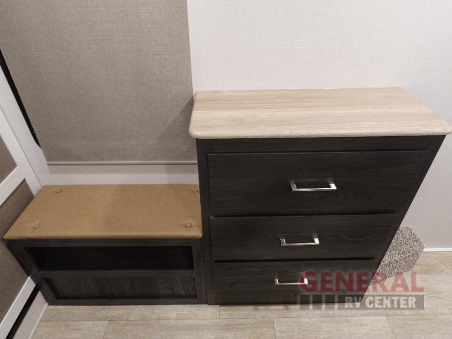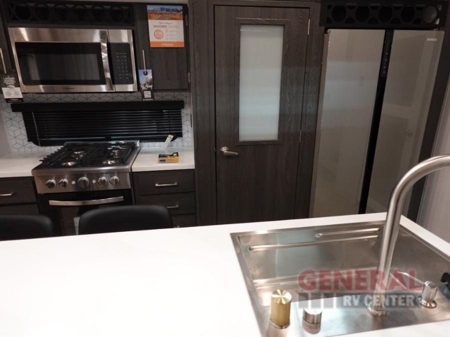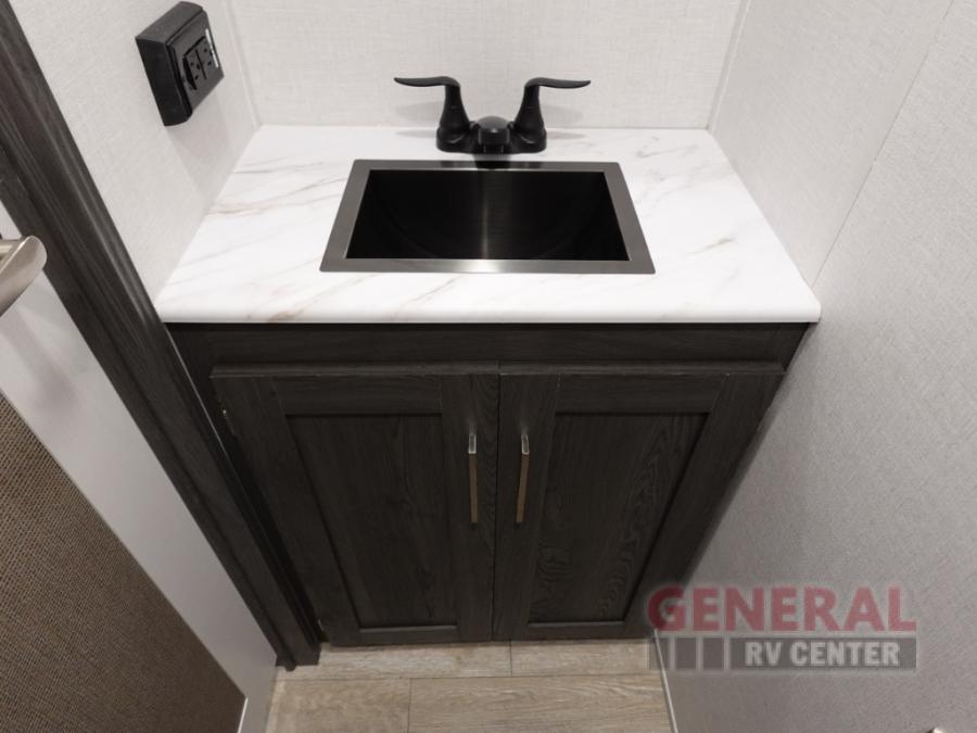 With any Impression mid-profile fifth wheel by Forest River, the focus of the design is comfort and value, built with quality craftsmanship and attention to customer's desires in each Impression! The exterior includes upgraded E-rated MAXXIS tires, custom exterior graphics package, and insulated slam latch baggage doors. There is also an enclosed docking station, an outside shower, and a 100W roof solar panel for off-grid capabilities. The fully heated and enclosed AccessiBelly has removable underbelly panels and offers four seasons of travel, and there is an industry leading 15K A/C plus 35K BTU furnace to keep you comfortable. The interior has lumbercore cabinetry, residential linoleum, residential backsplash in the kitchen, and oversized opening windows in the living area for more natural lighting and good air flow.
