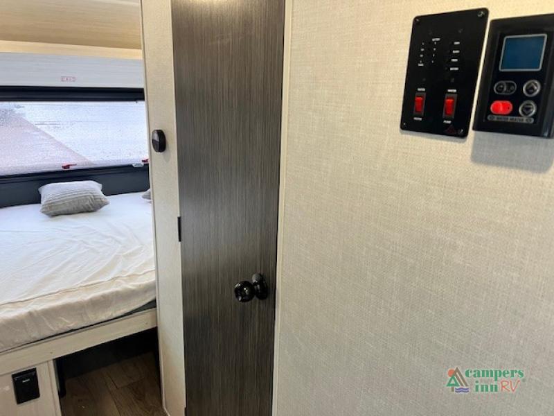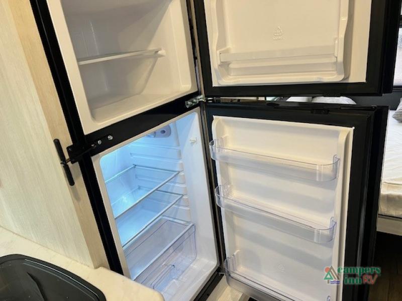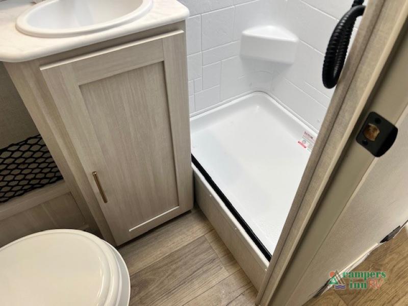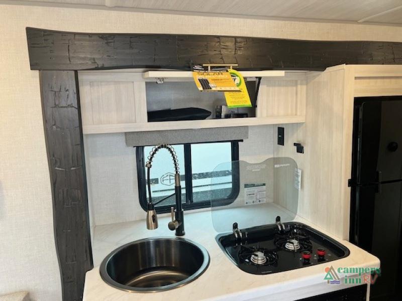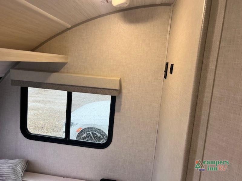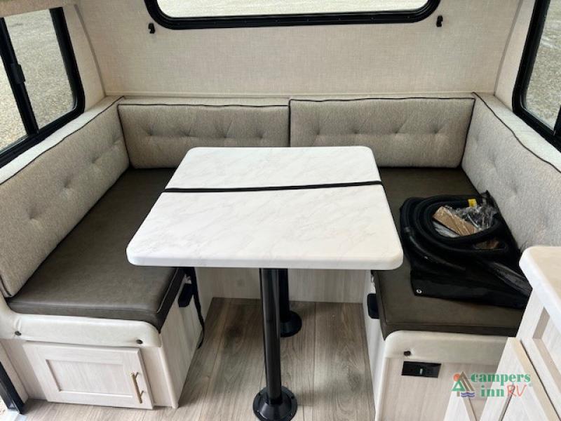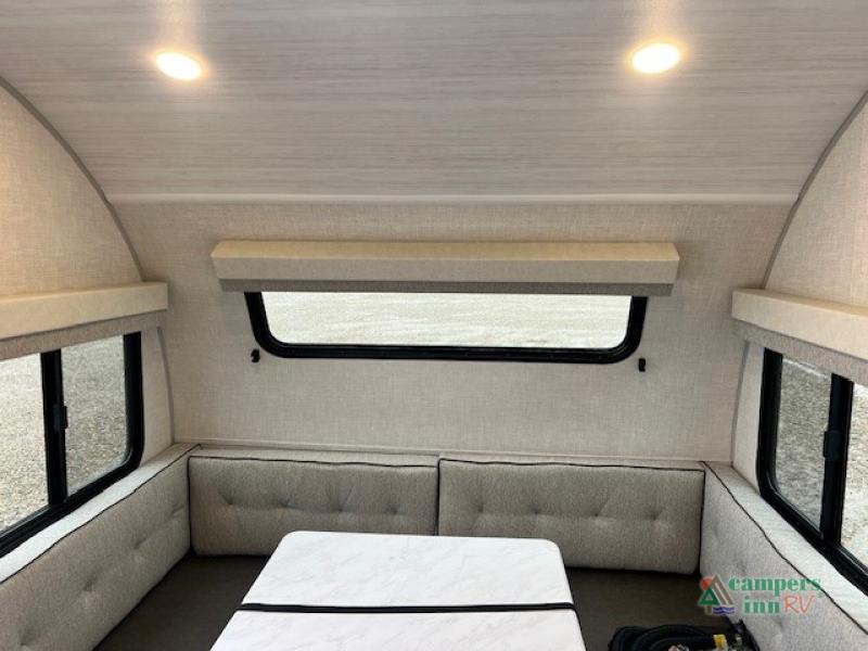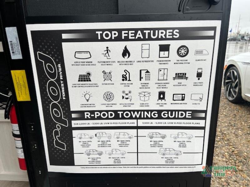 With any R-Pod travel trailer by Forest River, you will enjoy affordable luxury at the lowest tow weight in its class! There is a sealed underbelly with forced heat, a curved dual-pane acrylic front window with a bug screen and night shade, plus a large roof mounted solar panel for off-grid capabilities. The 15K A/C unit will keep you comfortable during the summer camping months, and the tankless water heater will provide endless hot showers after hiking, biking, swimming and more! Each model also includes a black glass friction hinge entrance door, roof ladder prep, exterior motion lighting, plus a hot and cold exterior spray port to wash off sand from the beach. Inside, you'll enjoy seamless Surf-X kitchen countertops, blackout roller shades, and a central vacuum system for hassle-free cleaning!