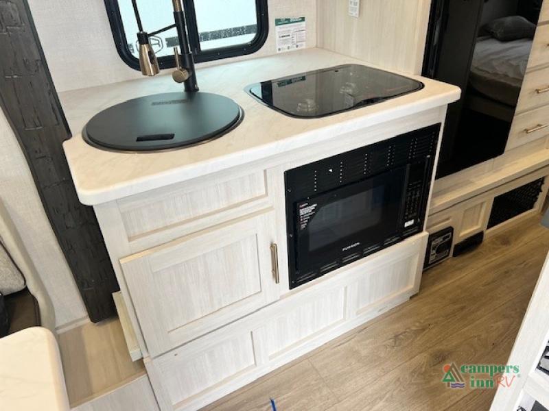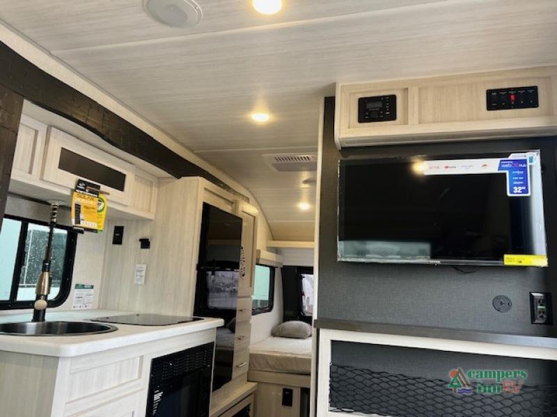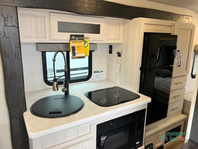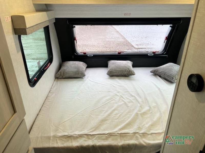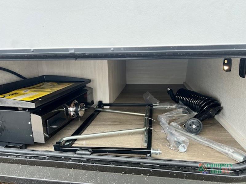 For the couple who is ready to camp anytime and anywhere, you will love how easy it is to travel with this travel trailer. You can easily set up theĀ single slide to give you more room to move about. Within this slide, you will find the kitchen amenities, which include a two-burner cooktop, convection microwave and a 12V black glassĀ refrigerator. You can enjoy your meals at the U-shaped dinette, and this furniture can double as a sleeping space, if needed. Along the front is a queen bed where you can rest up for another day of fun and adventure. With all of the exterior storage, you can bring along all of your necessary camping items and more!