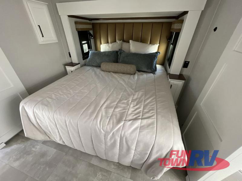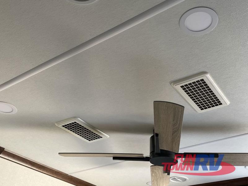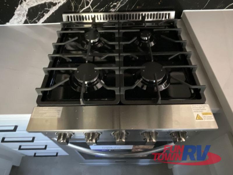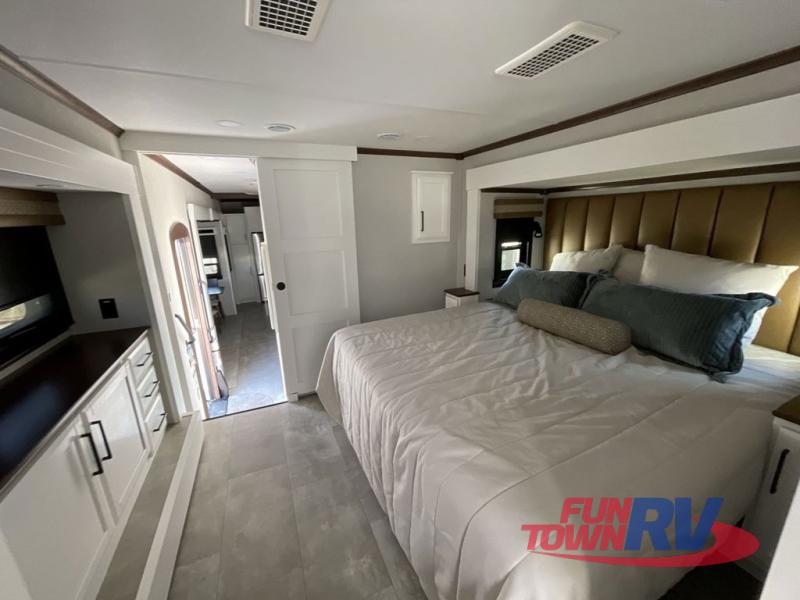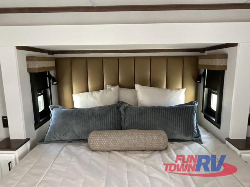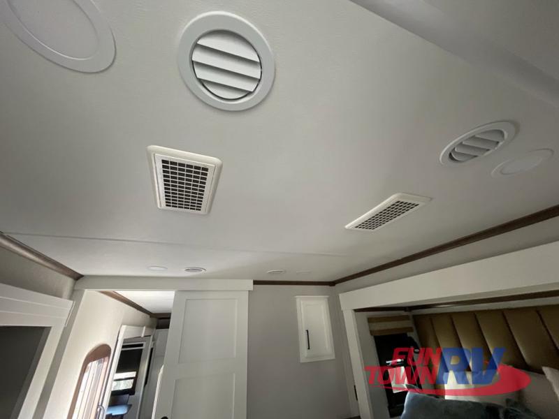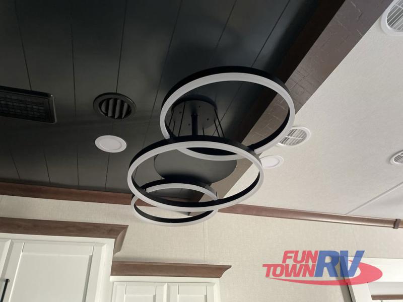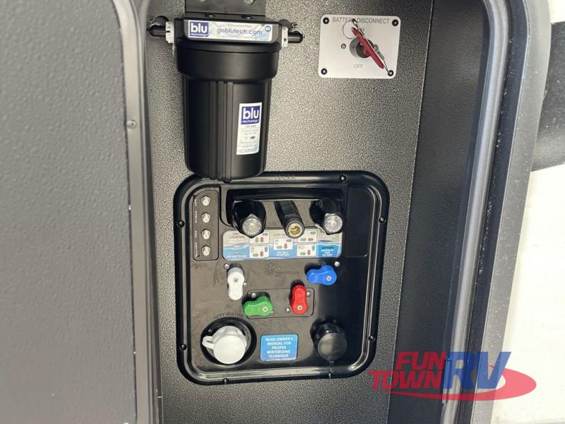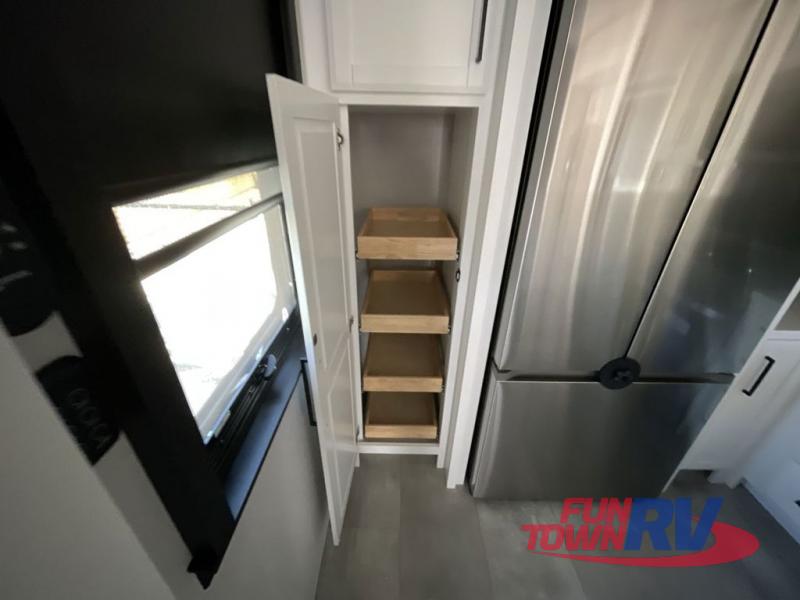 The Forest River RiverStone fifth wheels and toy haulers are luxurious units that have it all! You'll find an automatic six-point hydraulic level-up system to keep your unit in place, and there is preparation for a four-camera observation system. The TravlFi Journey XTR 4G/LTE router and WiFi extender will help you stay connected to the outside world, and you'll never have to overpack again since the Splendid “Astral” stackable washer and dryer will let you clean the small amount of clothes you've brought with you. Another high luxury is the Fischer Paykal dishwasher which will allow you to spend more time enjoying your camp life and less time cleaning up. Each unit is built with an LCI Road Armour suspension system, dual-pane frameless windows, a full docking station, a 200W solar panel, and a BMPro touch control system.