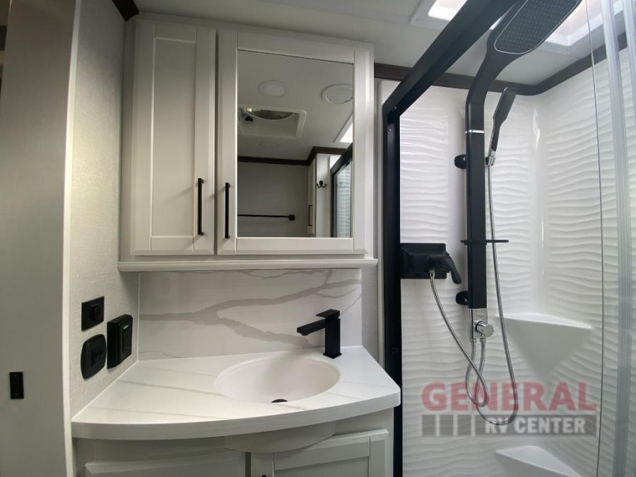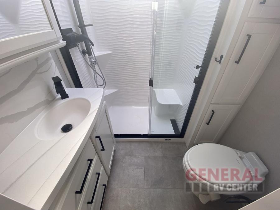 The Forest River RiverStone fifth wheels and toy haulers are luxurious units that have it all! You'll find an automatic six-point hydraulic level-up system to keep your unit in place, and there is preparation for a four-camera observation system. The TravlFi Journey XTR 4G/LTE router and WiFi extender will help you stay connected to the outside world, and you'll never have to overpack again since the Splendid “Astral” stackable washer and dryer will let you clean the small amount of clothes you've brought with you. Another high luxury is the Fischer Paykal dishwasher which will allow you to spend more time enjoying your camp life and less time cleaning up. Each unit is built with a LCI Road Armour suspension system, dual-pane frameless windows, a full docking station, a 200W solar panel, and a BMPro touch control system.