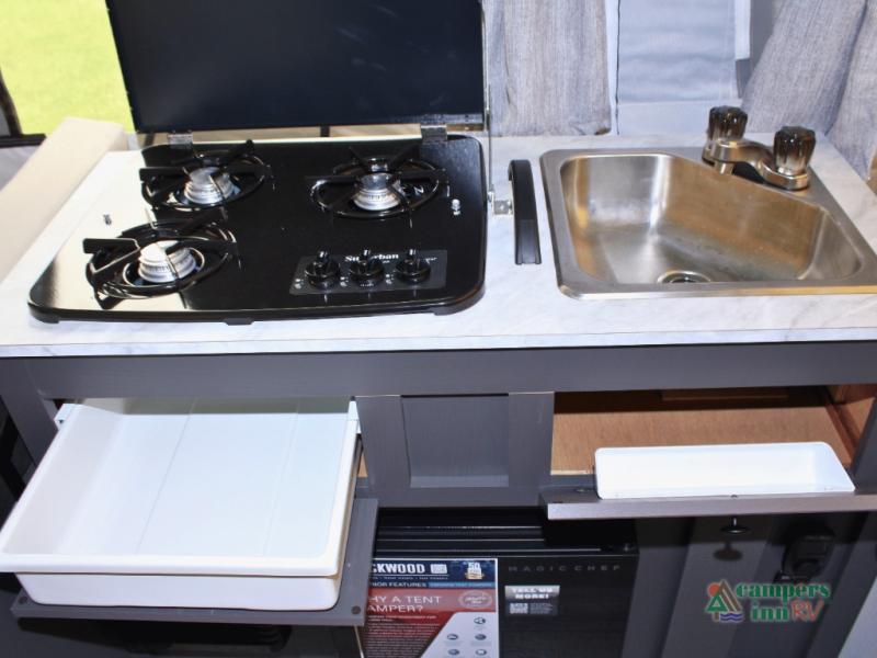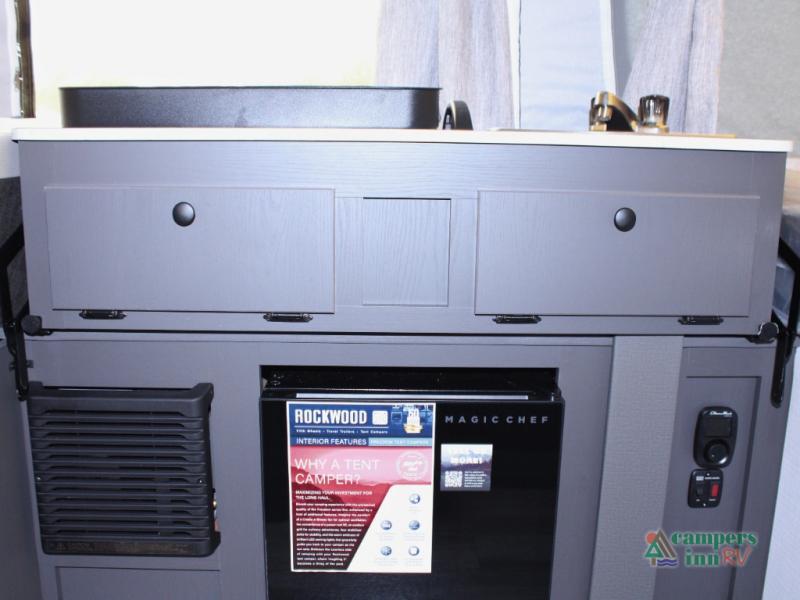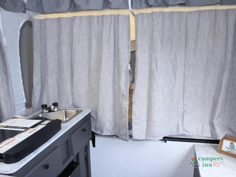 The Rockwood Freedom Series is built with durable fiberglass walls, an E-coated tubular steel frame, and five-piece sectionalized tenting with vinyl windows for maximum durability and ventilation. Inside, you’ll find plush seating, attractive cabinetry, and modern appliances—all crafted with Forest River’s legendary attention to detail.