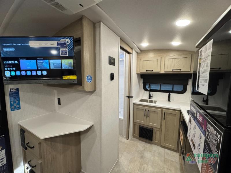 Pack your bags and head to your local state park in this travel trailer! You will love the extra space you have thanks to the kitchen slide out, and the jack knife sofa can fold away at night so you can sleep on the Murphy bed! This model includes a 32" 12V TV to keep you entertained on those rainy days, and the full bath will let you get cleaned up if you decide to hike despite the weather. There will be plenty of storage space for your belongings and gear since there is a pass-through storage and additional exterior storage, and don't overlook the exterior griddle for breakfast outdoors!