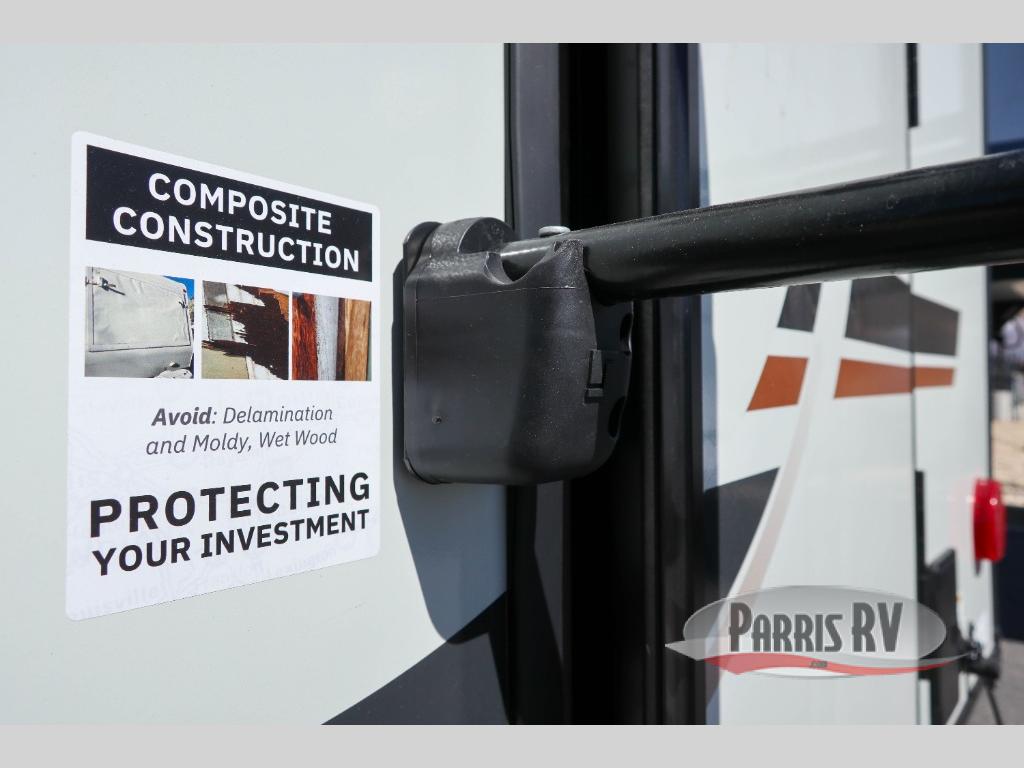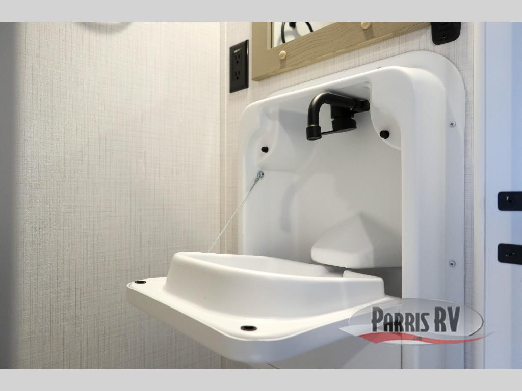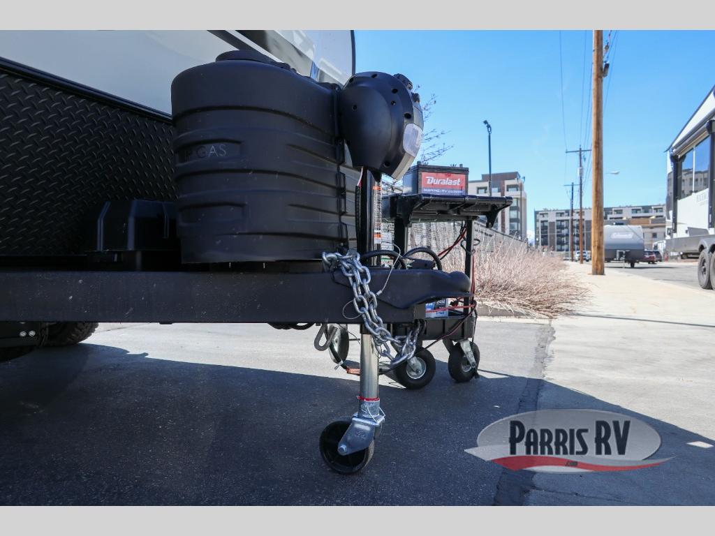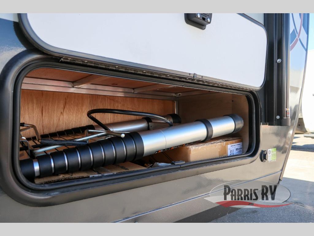 You'll love every minute spent in this versatile travel trailer! There is a unique rear entry with Solid Step entry steps, a front 54" x 74" Murphy bed to sleep on, plus a shower to freshen up each day. There is also a private toilet and flip-down bath sink so you both can get ready for bed at once. When you wake up, you can easily fold up the Murphy bed so you can dine at the booth dinette. The exterior of this model is just as accommodating as the interior with its 10' power awning, exterior griddle, convenient storage, and On-The-Go ladder!