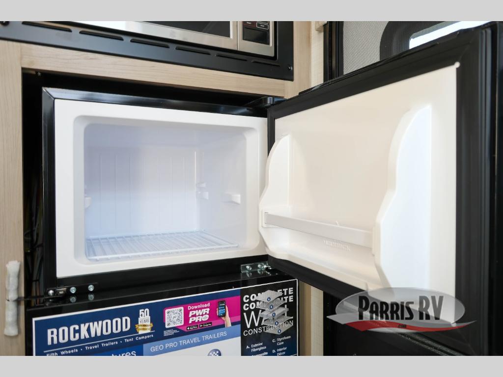 With any Rockwood GEO Pro travel trailer by Forest River you will enjoy easy towing, durable construction, and off-road capabilities with larger 15" tires and a lift kit! Each model is constructed with complete composite wall construction for added strength and durability, and the torsion axle, Rubber-Ryde suspension will make towing easier than ever. Inside, you'll find sleek roller shades for added privacy, a 12V refrigerator and a microwave, plus a 20,000 BTU furnace to keep you warm during the colder camping months.