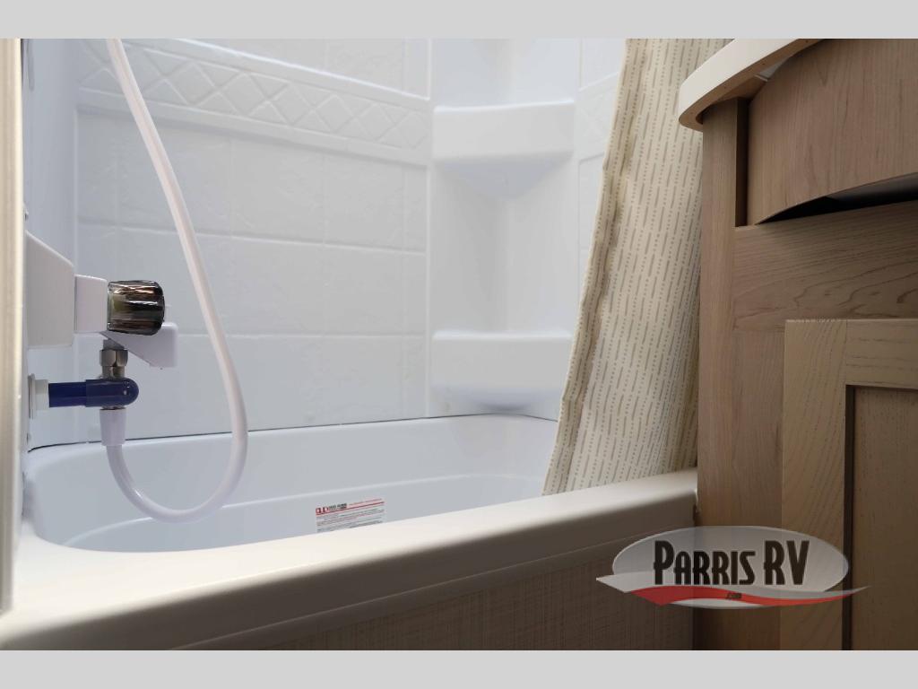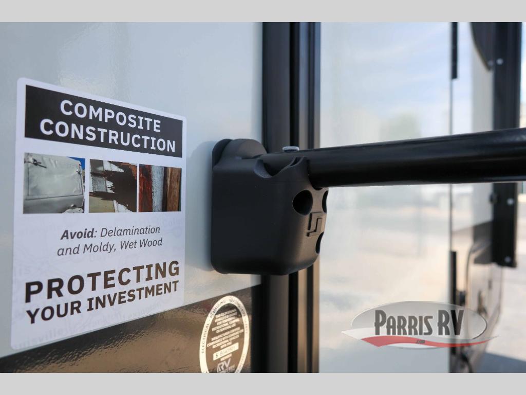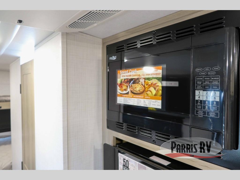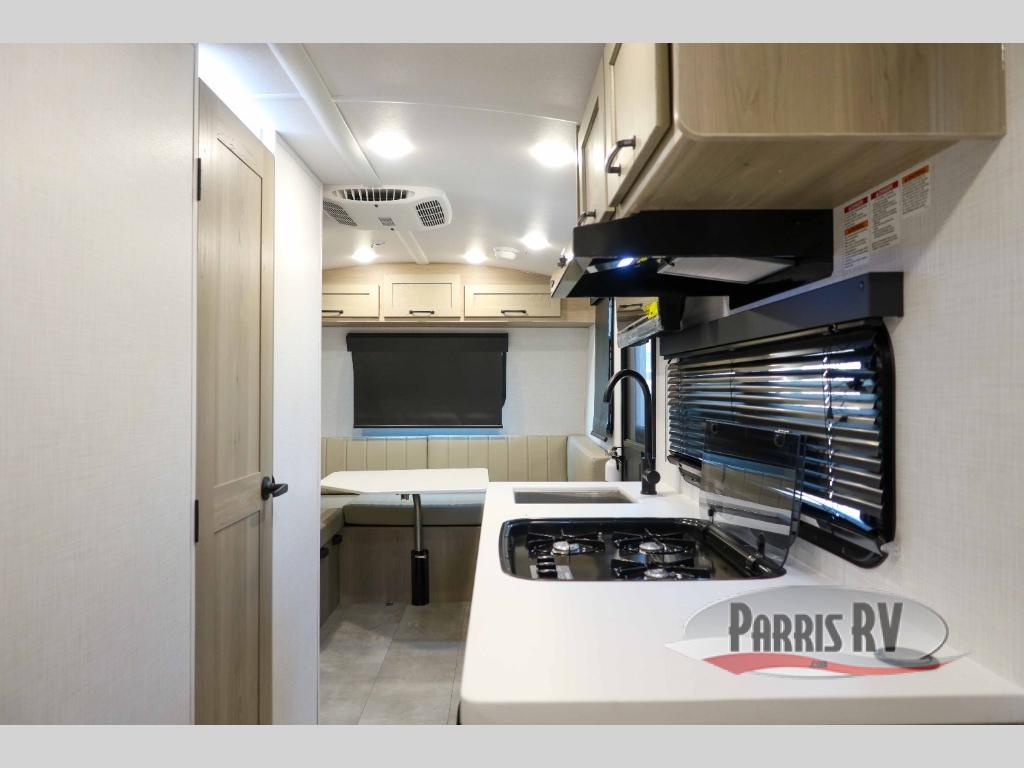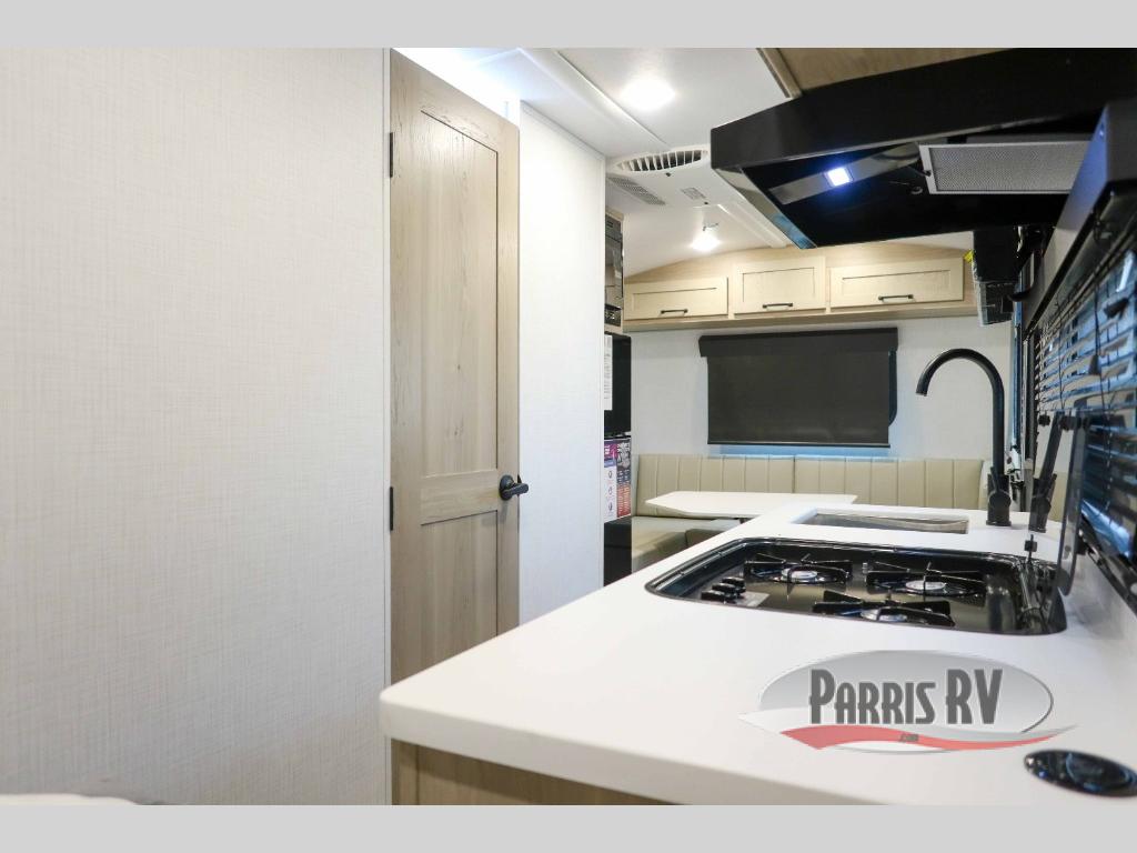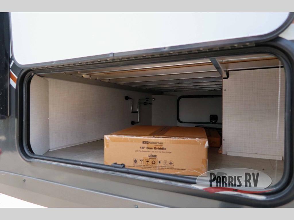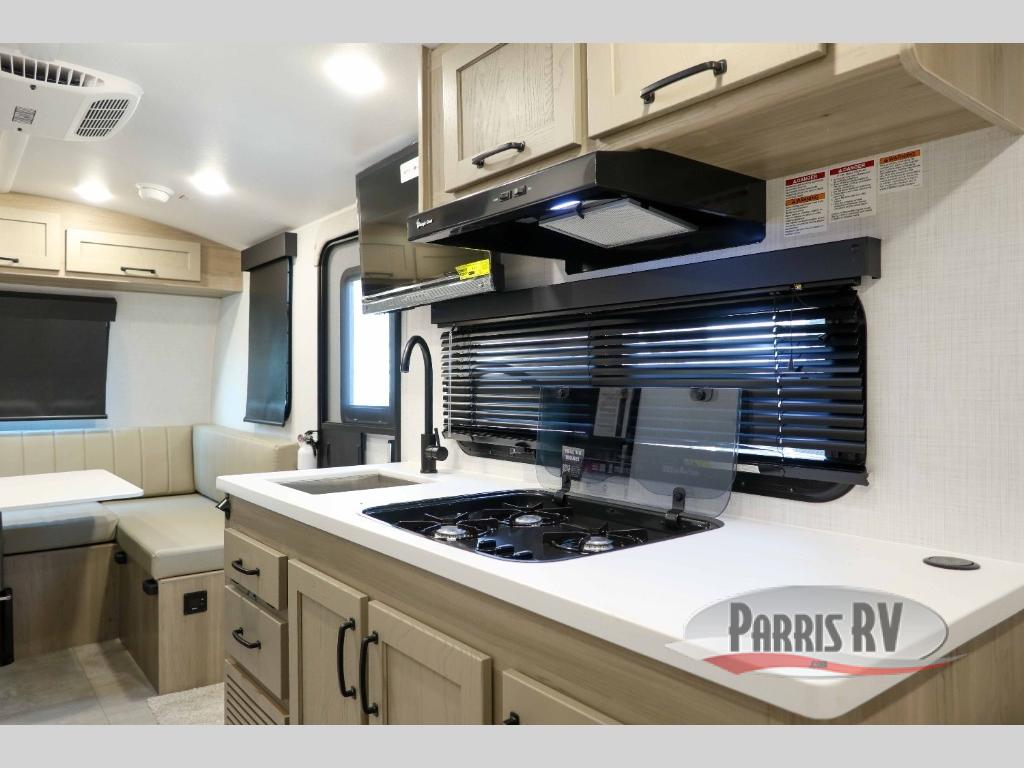 You'll love camping in this travel trailer that can sleep five each night. There is a front U-shaped dinette, a rear 54" x 74" full-size bed, plus a 26" x 80" flip-up bunk! A three burner cooktop and microwave oven let you create your best meals, and there is a 15' power awning and an exterior griddle if you want to cook outdoors. The full bath gives you privacy when freshening up after a day outdoors, and you'll find plenty of storage space in this unit, including in the overhead cabinets and the exterior pass-thru storage!