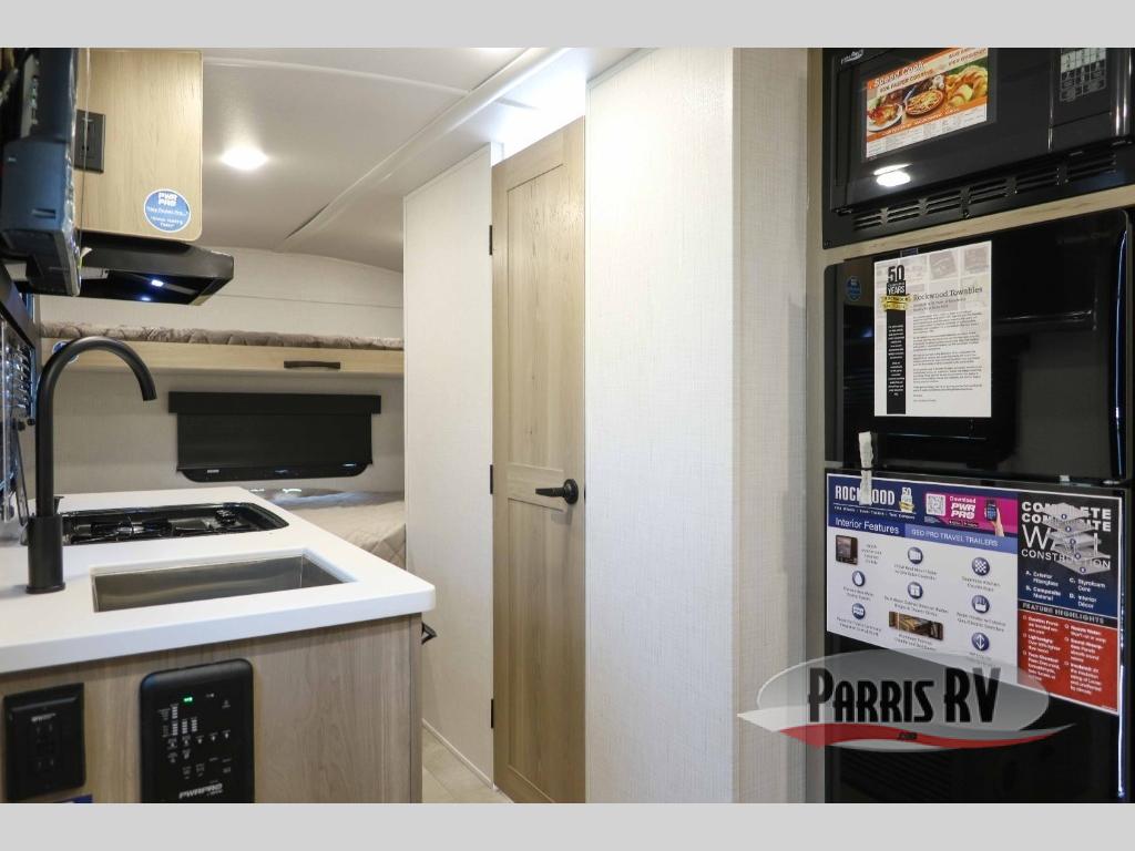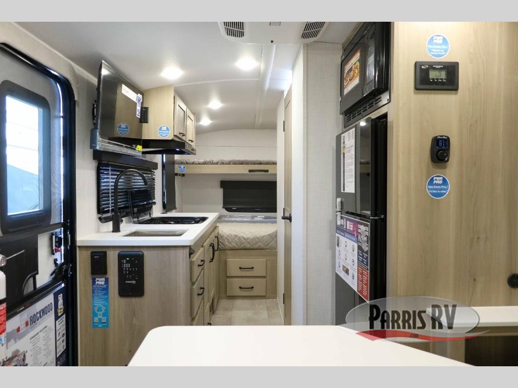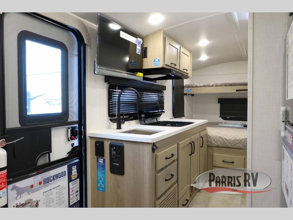 With any Rockwood GEO Pro travel trailer by Forest River you will enjoy easy towing, durable construction, and off-road capabilities with larger 15" tires and a lift kit! Each model is constructed with complete composite wall construction for added strength and durability, and the torsion axle, Rubber-Ryde suspension will make towing easier than ever. Inside, you'll find sleek roller shades for added privacy, a 12V refrigerator and a microwave, plus a 20,000 BTU furnace to keep you warm during the colder camping months.