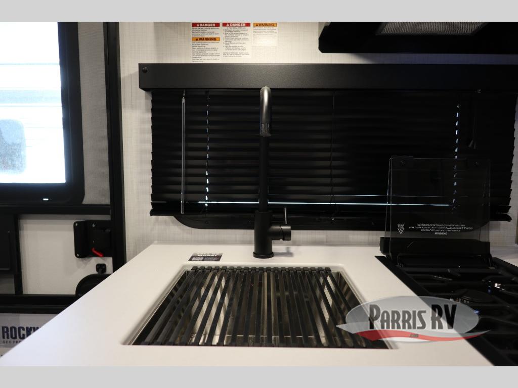 With any Rockwood GEO Pro travel trailer by Forest River you will enjoy easy towing, durable construction, and off-road capabilities with larger 15" tires and a lift kit! Each model is constructed with complete composite wall construction for added strength and durability, and the torsion axle, Rubber-Ryde suspension will make towing easier than ever. Inside, you'll find sleek roller shades for added privacy, a 12V refrigerator and a microwave, plus a 20,000 BTU furnace to keep you warm during the colder camping months.