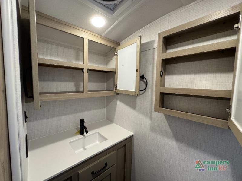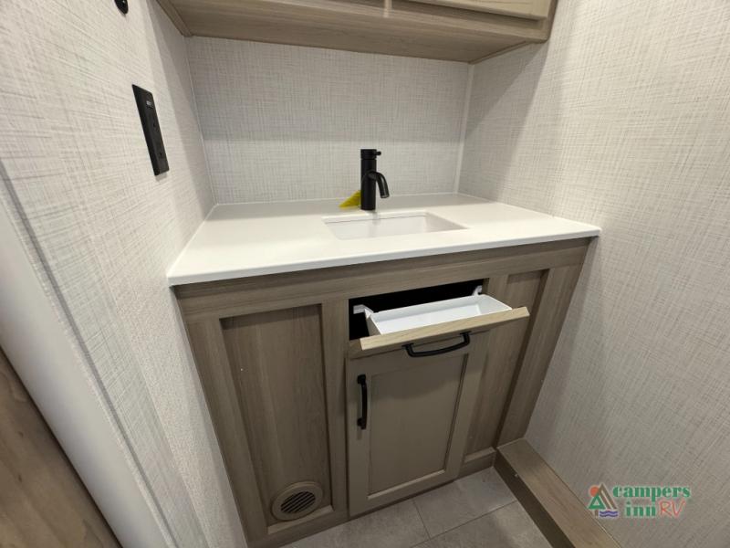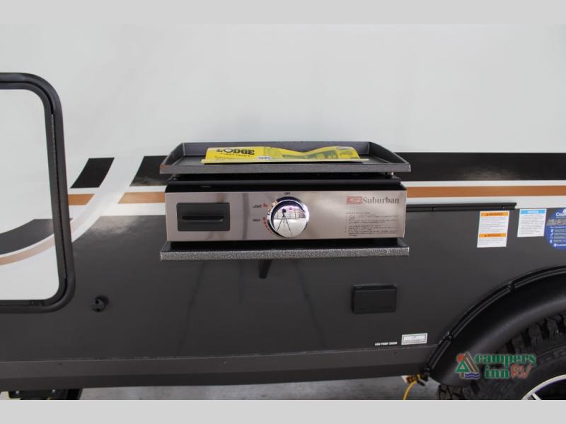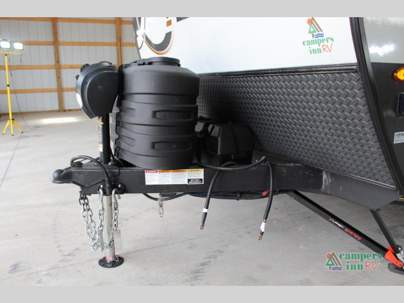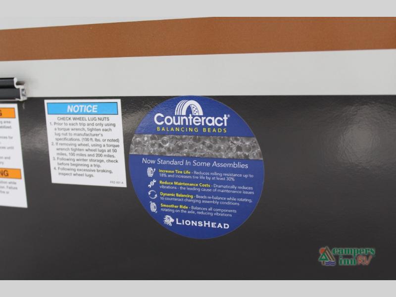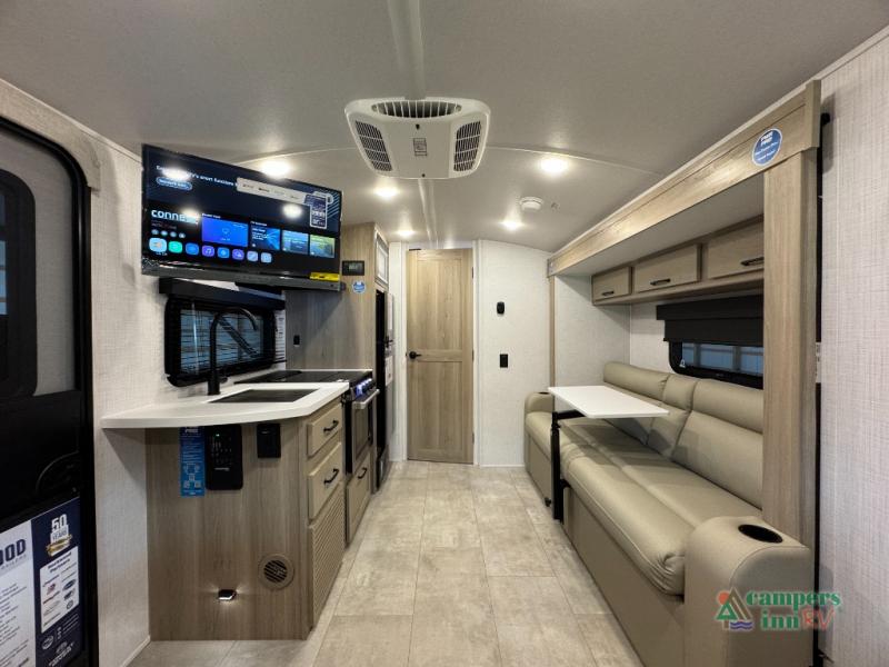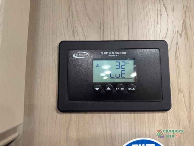 This travel trailer will feel more like home with its front bedroom and walk-around full-size bed. You'll enjoy the 32" 12V TV as you relax on the 72" sofa with a table and cupholders. The full rear bath includes a spacious shower to clean up in each day and there is a linen closet for clean towels. When you're ready to prepare dinner you'll have a three burner cooktop and microwave oven indoors, and a griddle outdoors! And don't forget the exterior storage allows you to bring along beach toys and tackle boxes. The optional Power Package available on this model includes three 200W solar panels, a side solar plug-in, a 3kW 160A inverter, and more off-grid features!