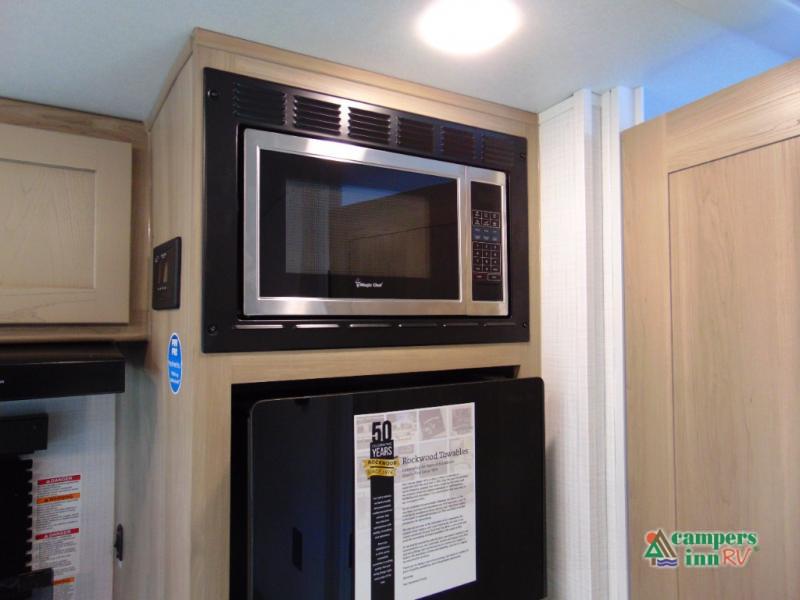 With any Rockwood GEO Pro travel trailer by Forest River you will enjoy easy towing, durable construction, and off-road capabilities with larger 15" tires and a lift kit! Each model is constructed with complete composite wall construction for added strength and durability, and the torsion axle, Rubber-Ryde suspension will make towing easier than ever. Inside, you'll find sleek roller shades for added privacy, a 12V refrigerator and a microwave, plus a 20,000 BTU furnace to keep you warm during the colder camping months.