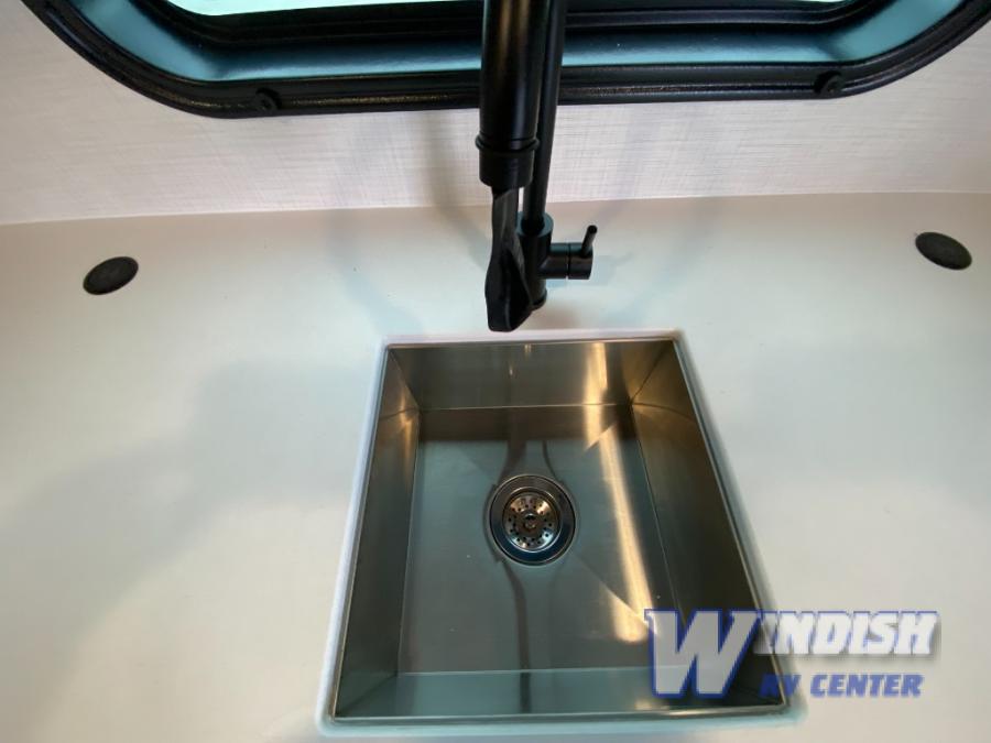 Are you looking for a lightweight trailer with at-home comforts? Take a look at this single slide out unit that can sleep three to four each night. There is a queen-size bed in the back with a 26" x 80" flip-up bunk for cozy sleeping space, a 72" sofa with cupholders to relax on, plus a 32" 12V TV for movie nights! The front kitchen includes a 12V refrigerator to store food, plus a microwave oven and a gas oven to cook meals each day.