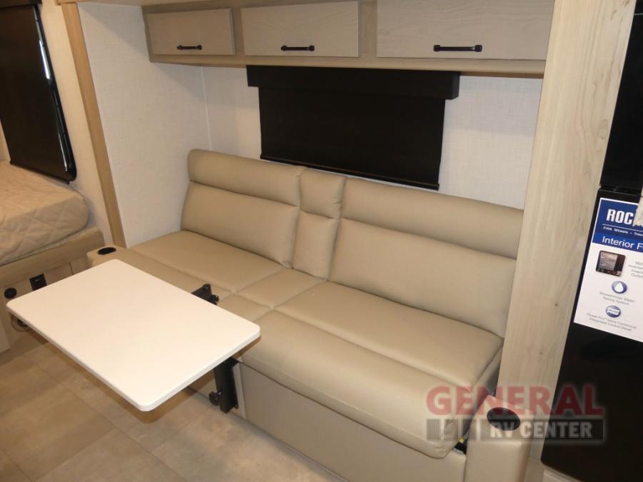 Are you looking for a lightweight trailer with at-home comforts? Take a look at this single slide out unit that can sleep three to four each night. There is a queen-size bed in the back with a 26" x 80" flip-up bunk for cozy sleeping space, a 72" sofa with cupholders to relax on, plus a 32" 12V TV for movie nights! The front kitchen includes a 12V refrigerator to store food, plus a microwave oven and a gas oven to cook meals each day.