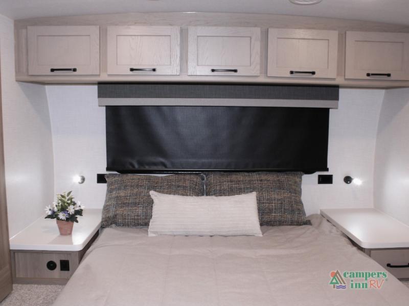 After a long day of exploring, retreat to your private bedroom featuring an RV queen bed and a wardrobe slide for added storage and space. There’s room to stretch out, unpack, and relax — and if you love watching the morning news from bed, there's an option to add a TV just for that.