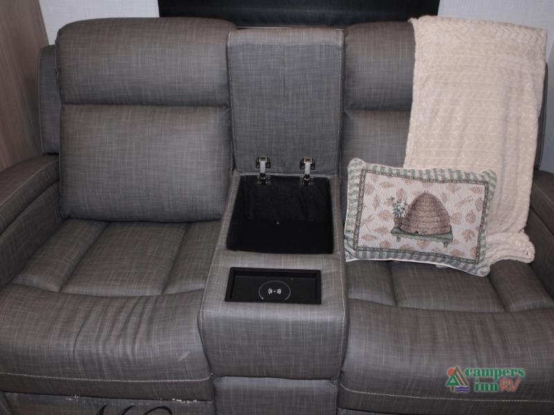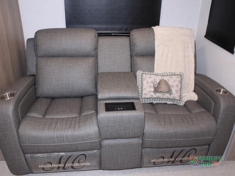 Grab a drink, kick up your feet, and relax on the comfortable theater seating. It's the perfect spot to enjoy a quiet dinner or unwind with a movie after a long hike. You’ll feel like you brought your living room along for the ride.