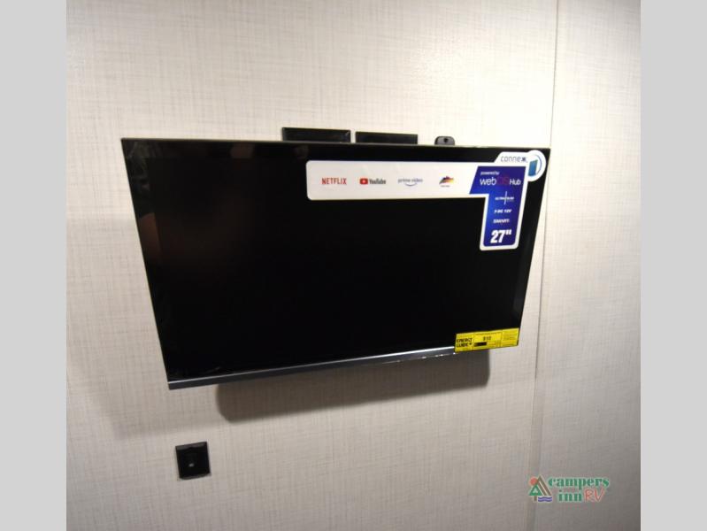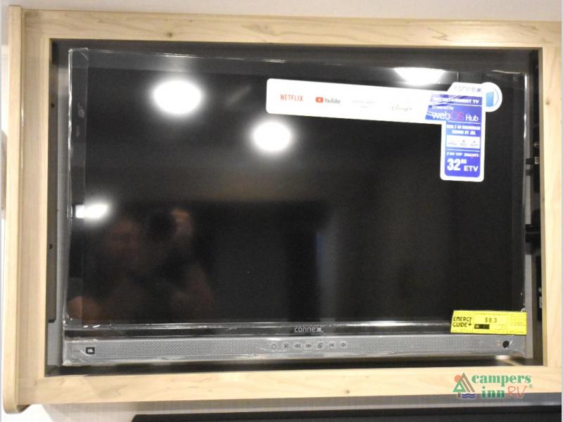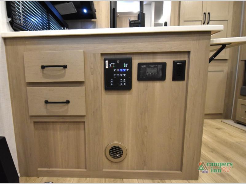 This trailer is one the whole crew will love! Start unloading the pass-thru storage when you arrive at your campsite, then put out the 18' power awning and start lunch on the exterior griddle. There is a full bath inside when you need to freshen up, and the fully-equipped interior kitchen can be used if the weather isn't cooperating with your plans. A U-shaped dinette slide provides a place to dine together and play board games, and two guests can sleep here at night. Speaking of nighttime, there is also a private bunkhouse in the back with a Dream Dinette and flip-up bunk plus a slide out for more space and an optional TV. You'll find your own space up front on the RV queen Murphy bed, complete with dual wardrobes and a privacy curtain when you need to get dressed. And in the morning you can fold away the bed to relax on the 74" sofa!