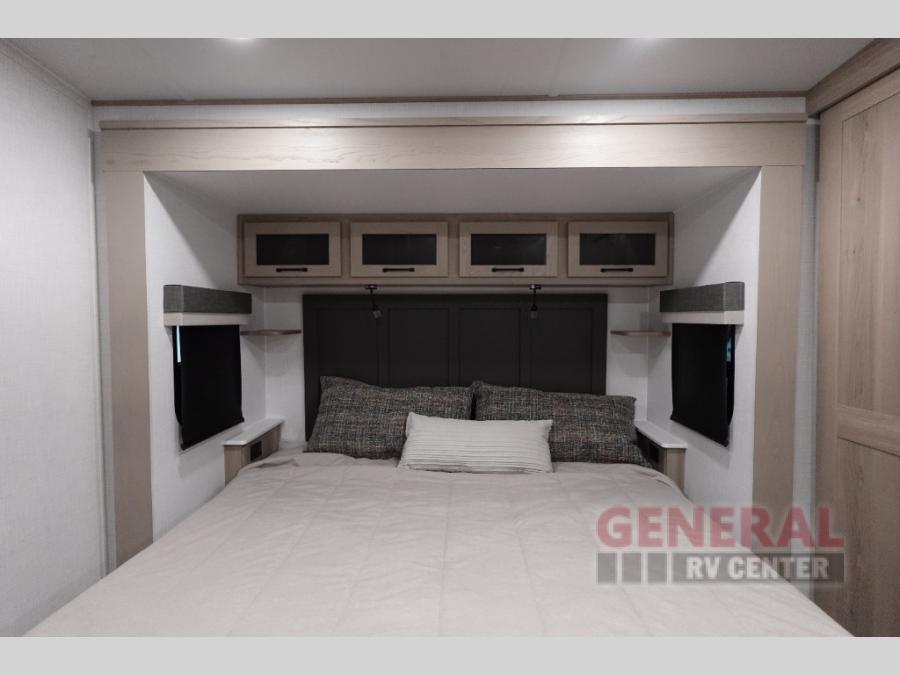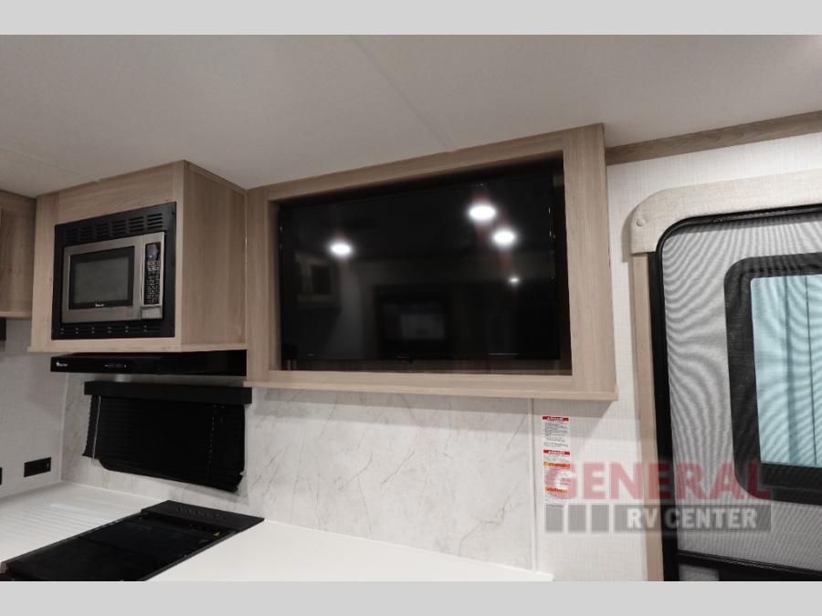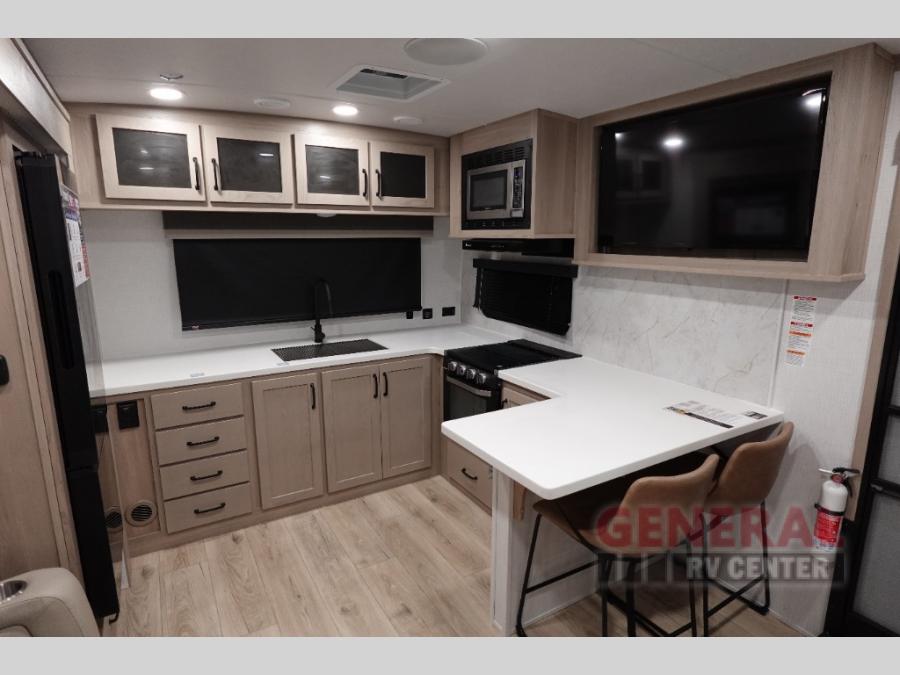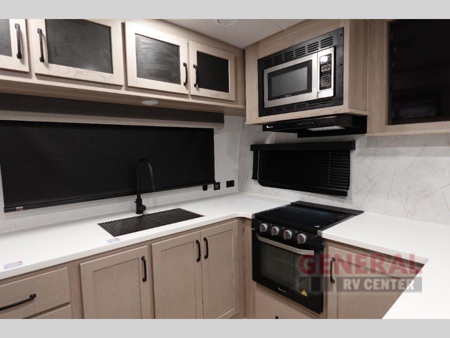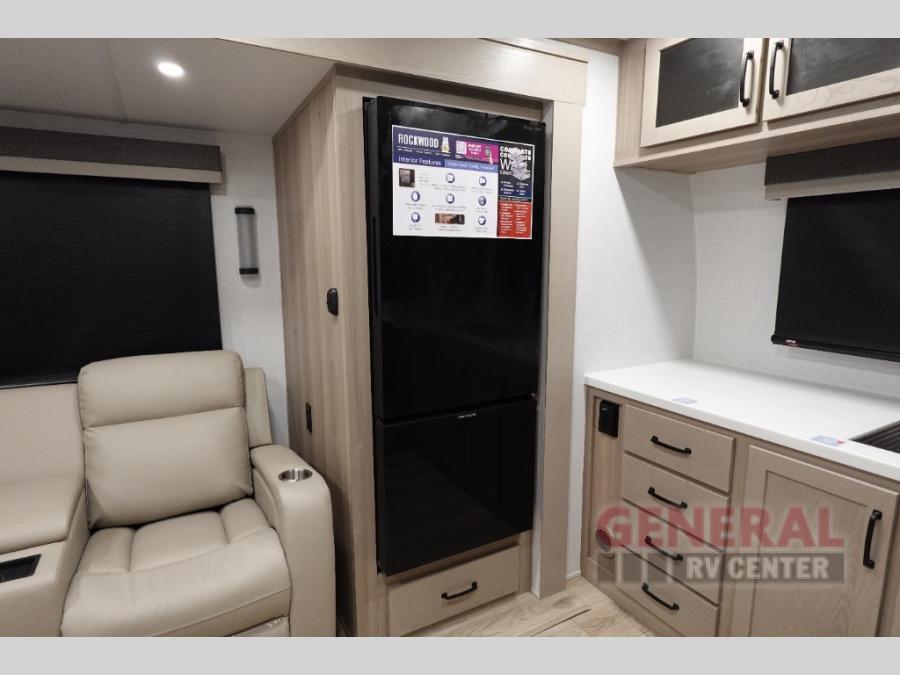 With any Rockwood Signature fifth wheel or travel trailer by Forest River RV, you will enjoy superior construction that includes laminated white fiberglass sidewalls, a radius roof with vaulted interior ceilings, plus radiant foil insulation and an enclosed underbelly for use in all types of weather. Some convenient exterior features include Keyed Alike locks, a rear ladder, a 200W solar panel, and a tire pressure monitor system with a monitor for added safety. The interior offers a One Touch OneControl panel with WeRV app control, for lights, awning, slides, water heater and more, and the Air 360+ omnidirectional antenna with WiFi prep lets you work while away from home if needed. You will also appreciate the interior vaulted ceilings, residential soft close doors and drawers, solid surface kitchen countertops, and designer kitchen backsplash!