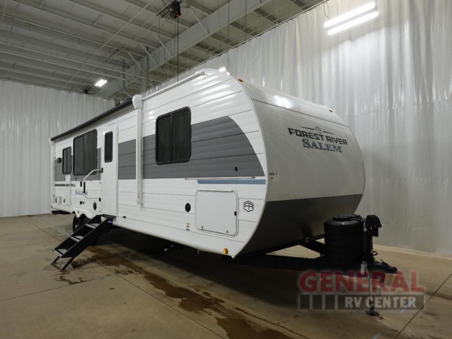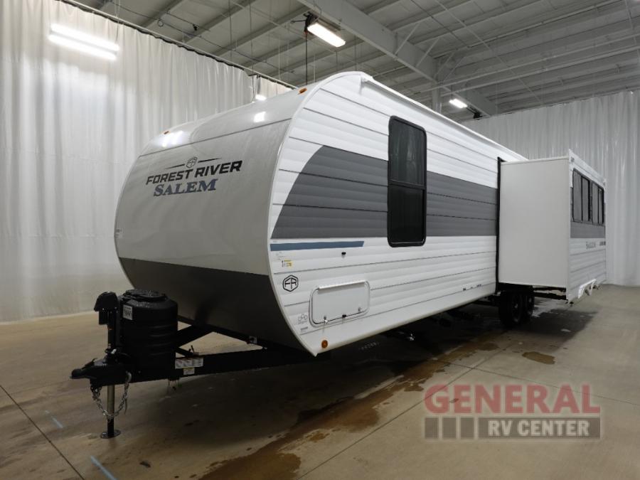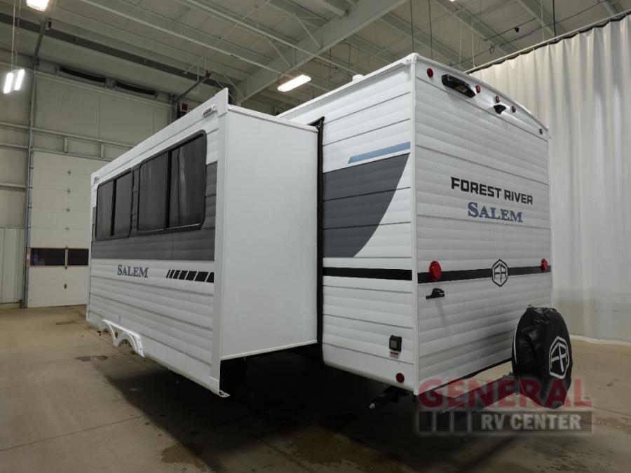 The Salem travel trailers are packed with hassle-free camping amenities! There are a variety of floorplans to choose from between three different regions. The heated and enclosed Accessibelly will help protect against the elements and debris during transport, and the exterior retro/metal redesign is sure to be eye-catching! There are stylish roller shades inside, along with updated backsplash, elegant curtain rods and curtains, plus many more interior comforts! Choose a Salem travel trailer today for quality and value!
