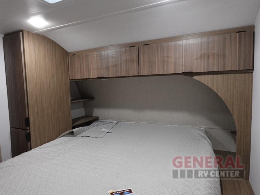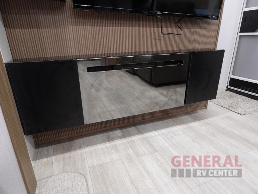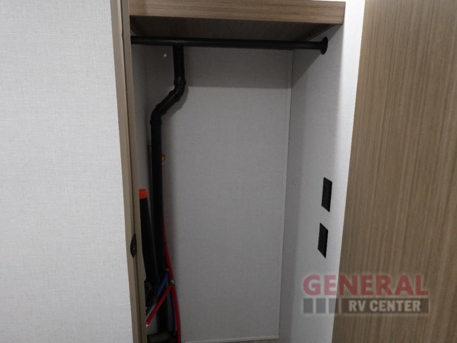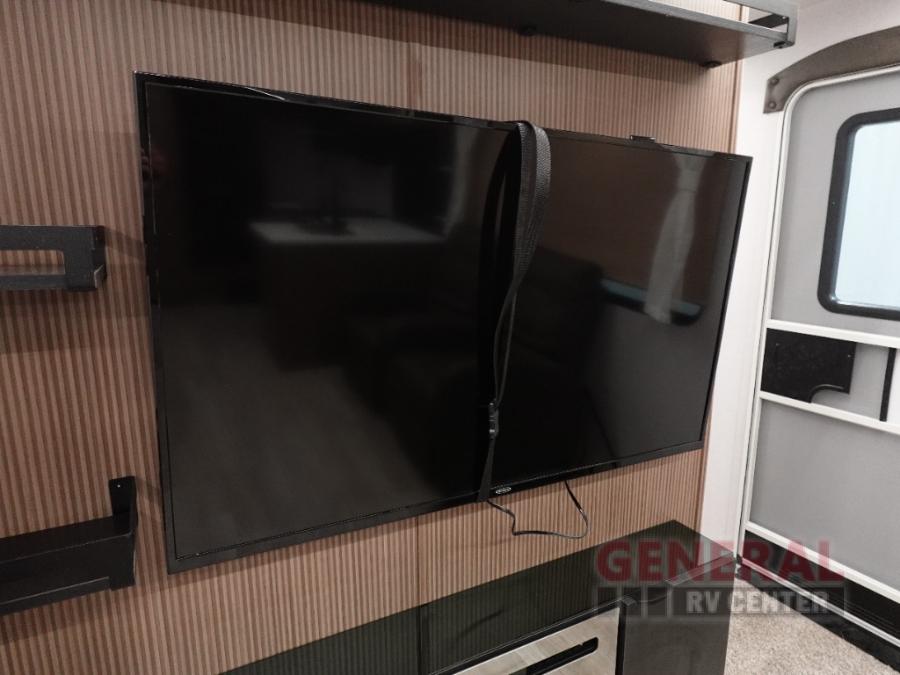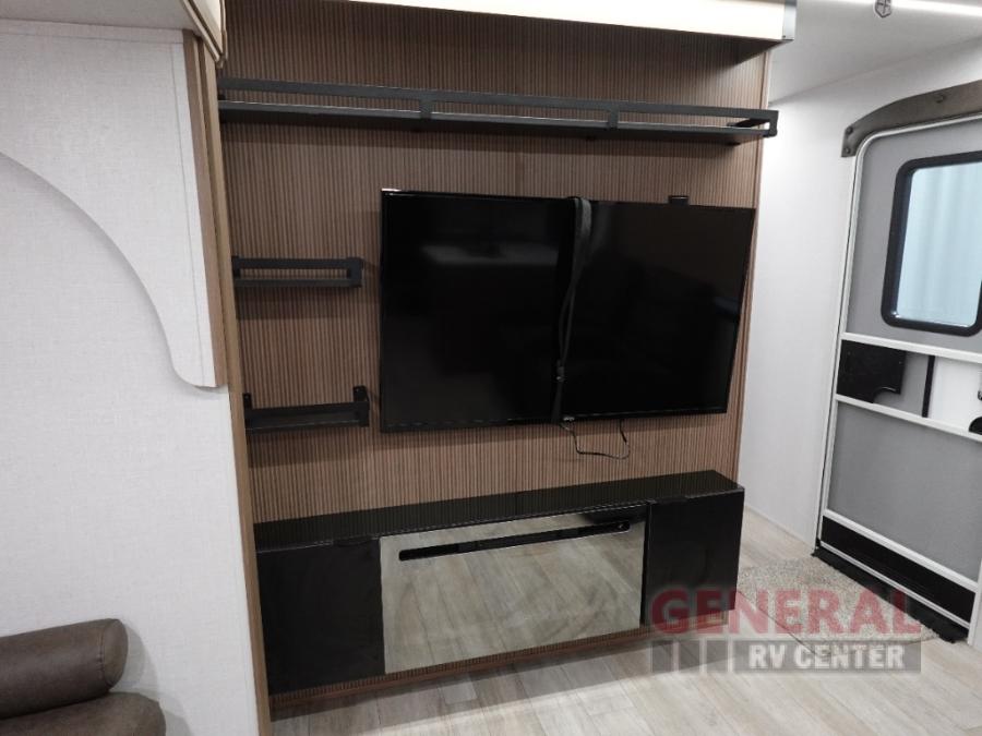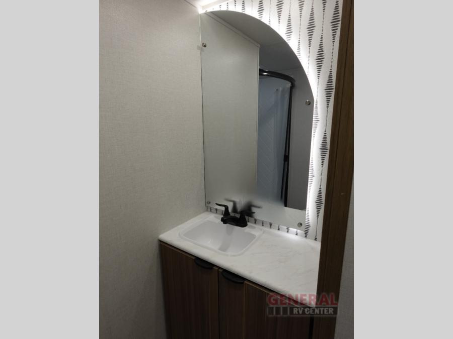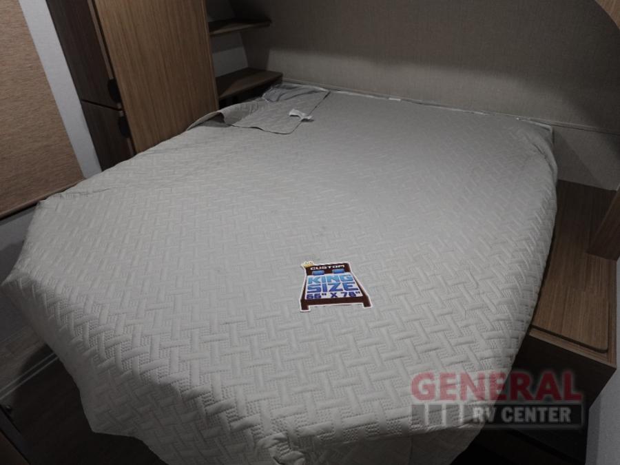 With a spacious kitchen and panoramic windows, this travel trailer is sure to stand out! The L-shaped sofa, dual lounge chairs, and Versa Flex table give you many seating options. You can either cook a delicious meal in the rear kitchen or you can use the exterior camp kitchen to breathe in some fresh air while you cook. After a fun-filled day, you can rinse off in the walk-in shower then head to the front private bedroom, grab your pajamas from the closet, and lay down on the custom king bed with Versa Tilt for a good night's rest!