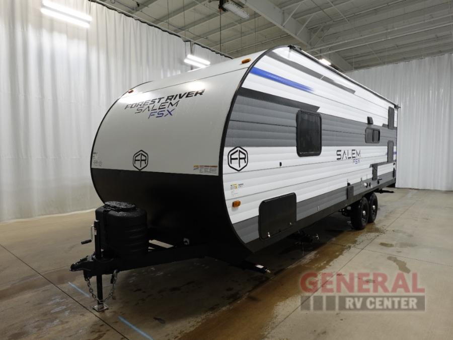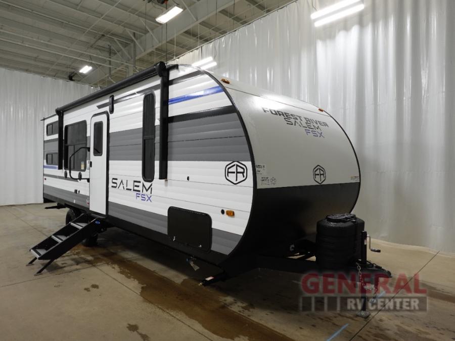 The Forest River Salem FSX travel trailers and toy hauler travel trailers are ultra comfortable and lightweight, perfect for first time or seasoned campers alike! You will love how easy it will be to relax with residential features that will make your space feel just like home, and the durable construction means you can enjoy your RV for years to come. There are a wide variety of floorplans to choose from, including couple's trailers, bunk models, and toy haulers, all with full bath and kitchen amenities and plenty of storage for all your gear!