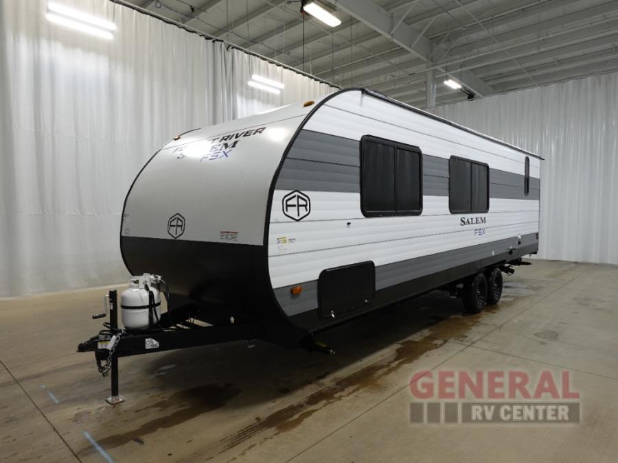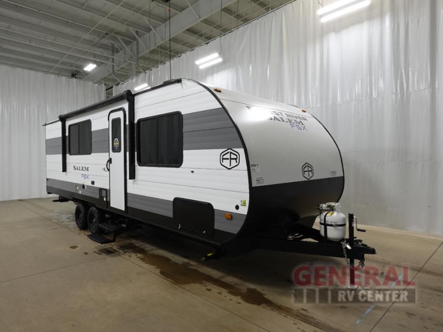The Forest River Salem FSX travel trailers and toy hauler travel trailers are ultra comfortable and lightweight, perfect for first time or seasoned campers alike! You will love how easy it will be to relax with residential features that will make your space feel just like home, and the durable construction means you can enjoy your RV for years to come. There are a wide variety of floorplans to choose from, including couple's trailers, bunk models, and toy haulers, all with full bath and kitchen amenities and plenty of storage for all your gear!